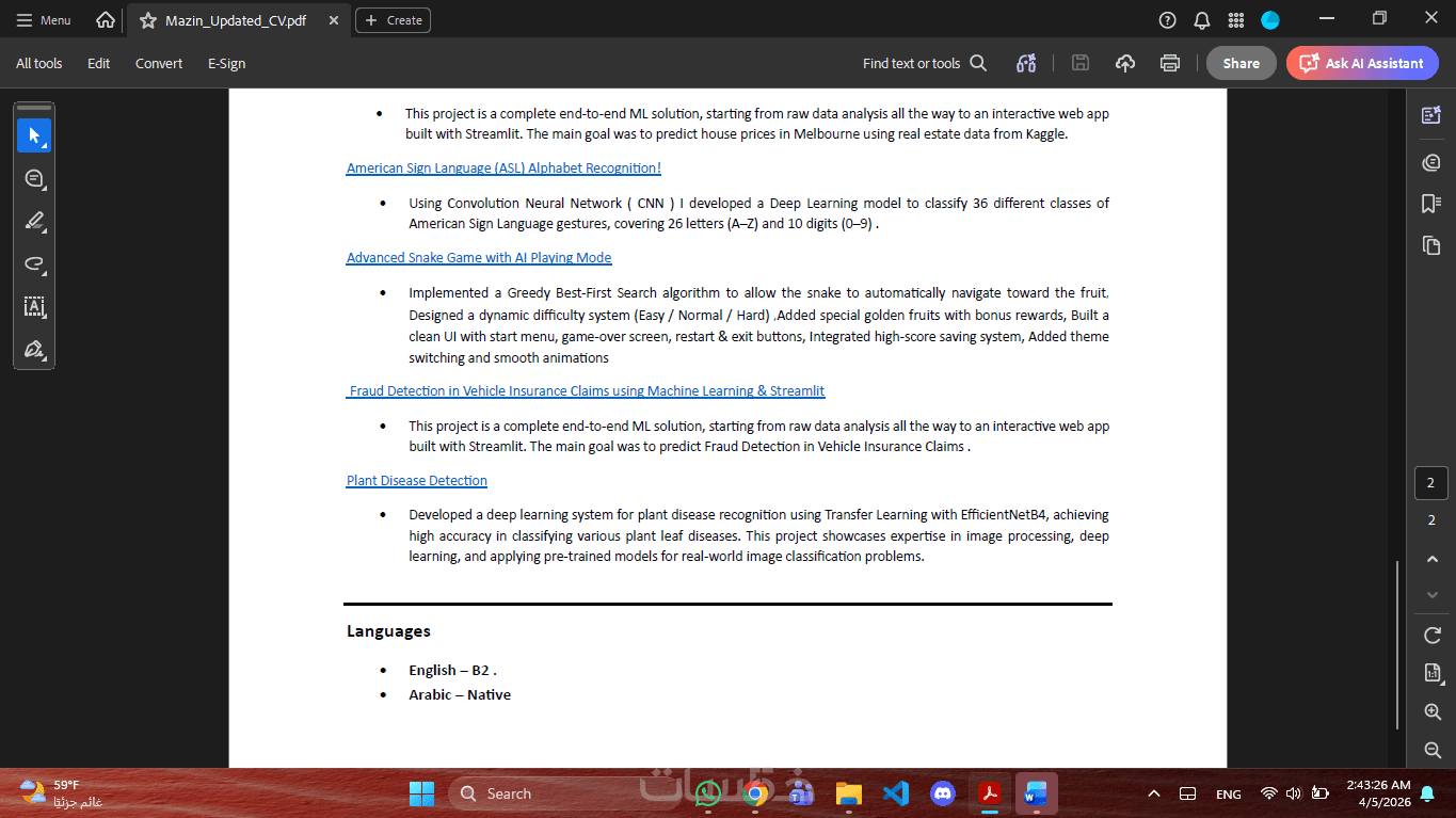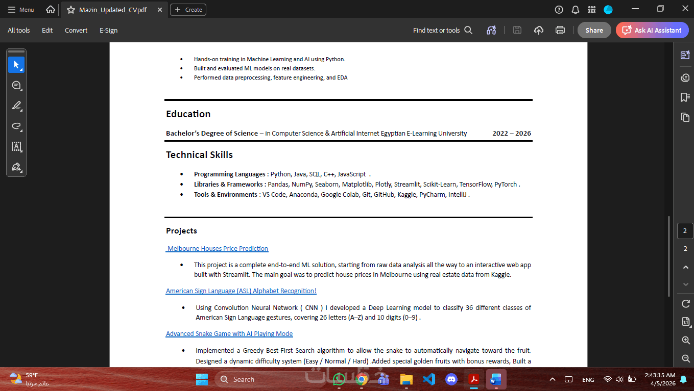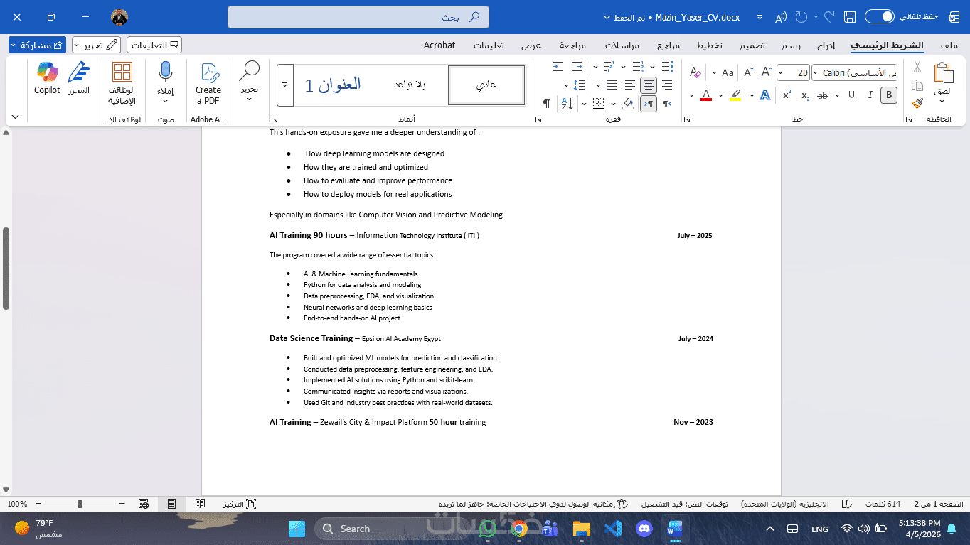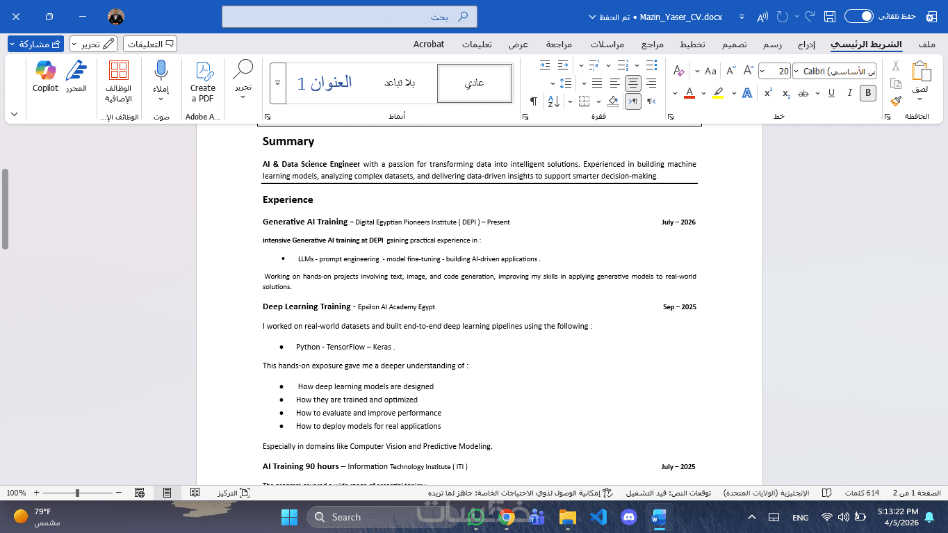 سيرة ذاتية (CV) منسقة بشكل احترافي وجاهزة للتقديم، يتم تسليمها بصيغتي PDF و Word.