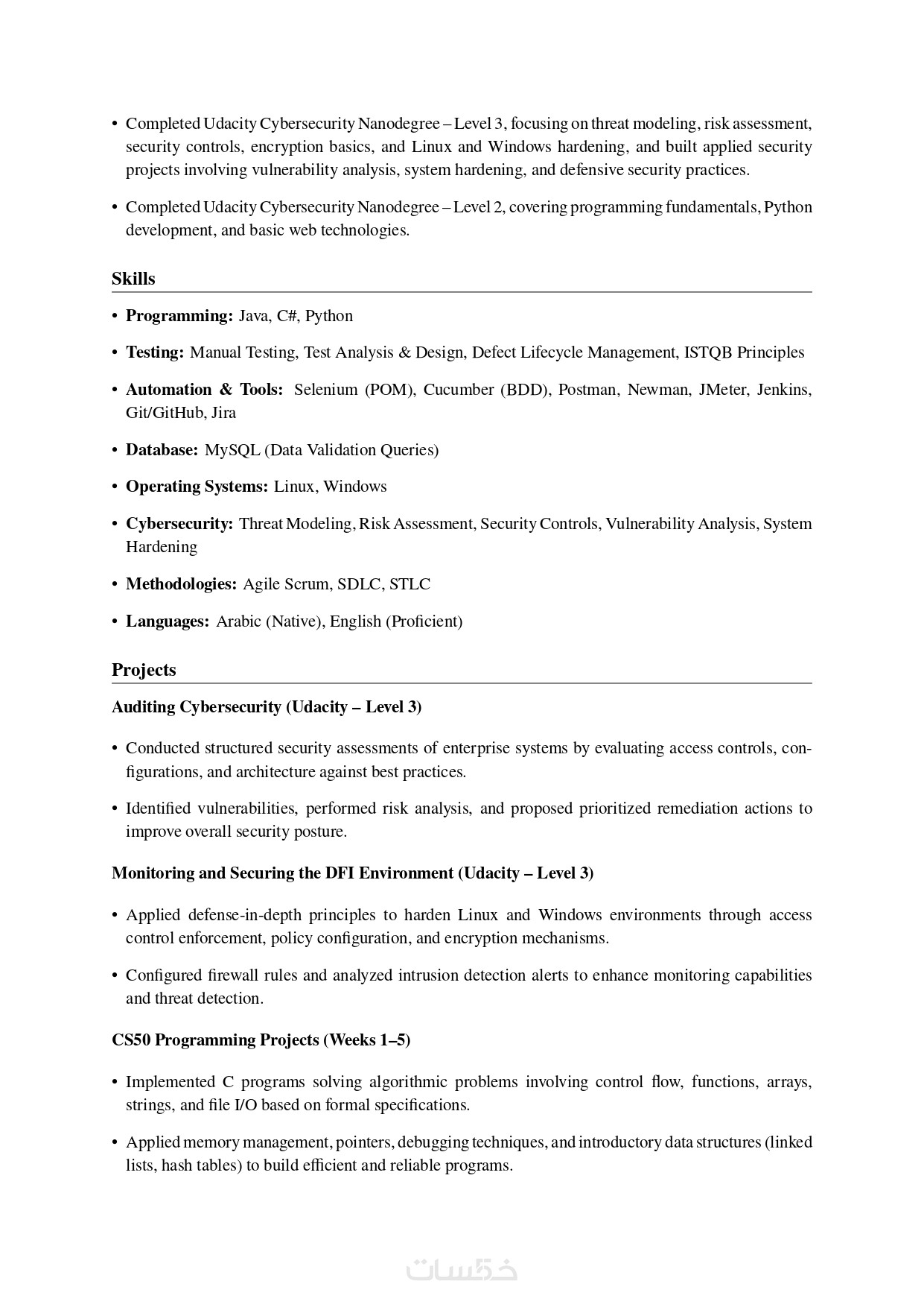 إعداد السيرة الذاتية أخرى بلغة إضافية (العربية أو الإنجليزية) مع الحفاظ على التوافق مع أنظمة ATS