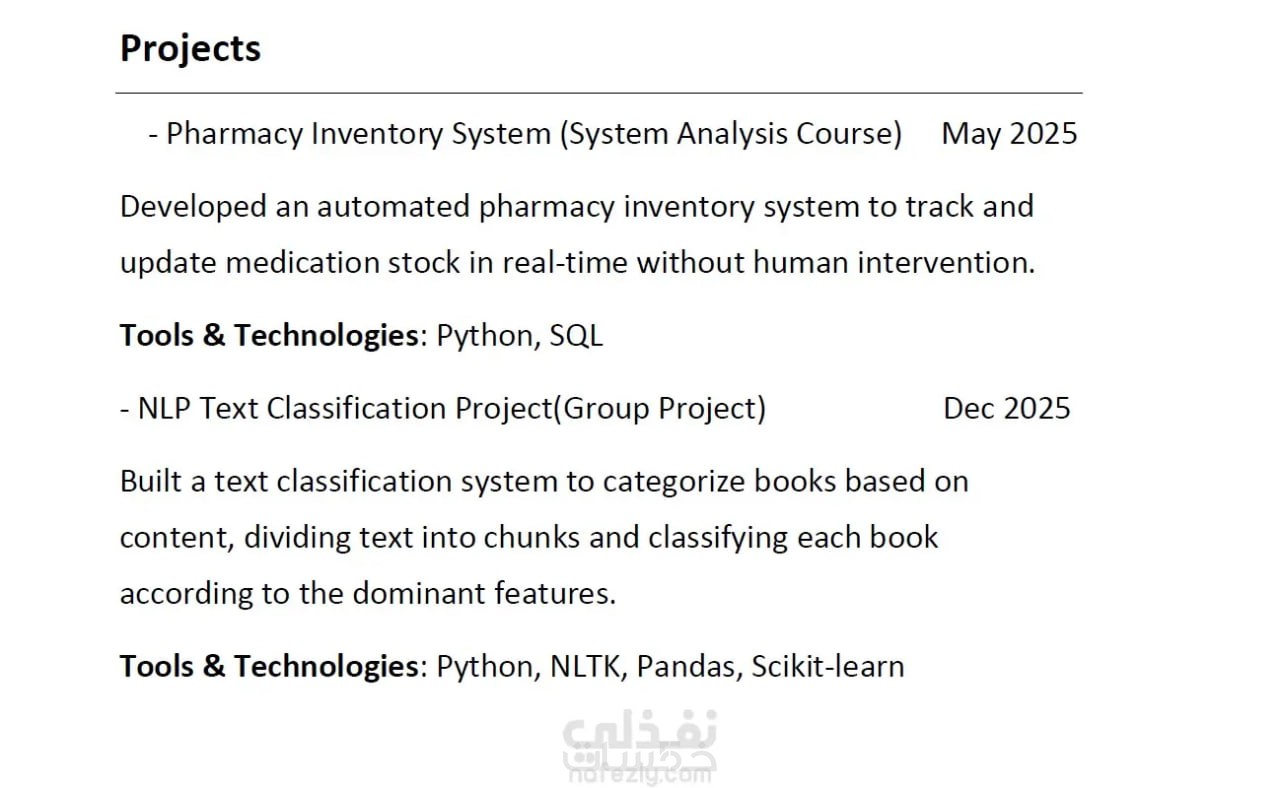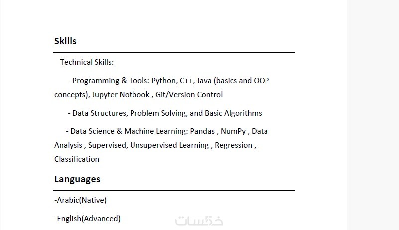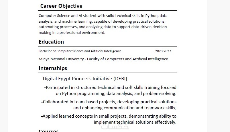 أنا أقدم خدمة كتابة وتصميم سيرة ذاتية احترافية بتنسيق حديث وجذاب، مع مراعاة معايير ATS (Applicant Tracking System) لضمان توافق السيرة الذاتية مع أنظمة التوظيف وزيادة فرص قبولها.
