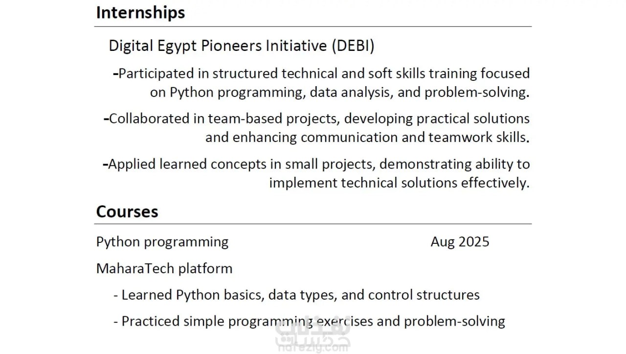 • ملف CV احترافي جاهز (Word أو PDF حسب الاتفاق)