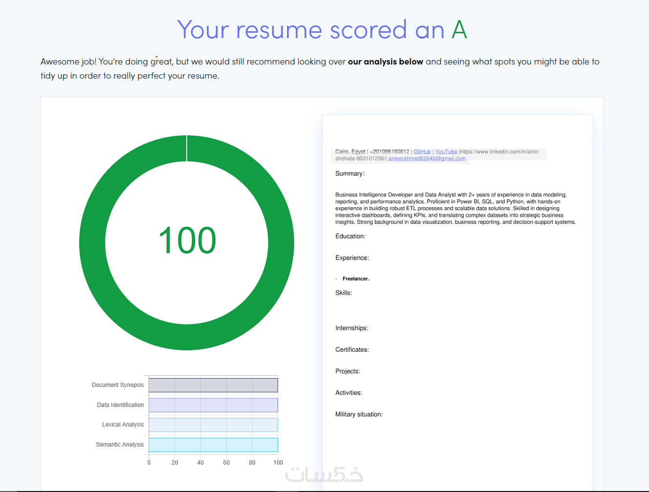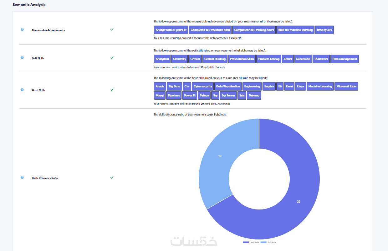 تنسيق هيكلي: تنظيم البيانات (الخبرات، التعليم، المهارات) بشكل يسهل على البرمجيات قراءته.