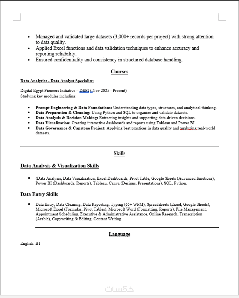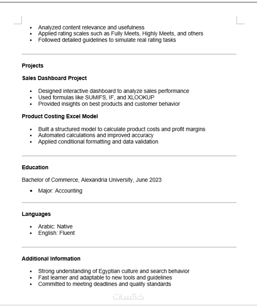 -صياغة قوية للخبرات والمهارات بأسلوب احترافي