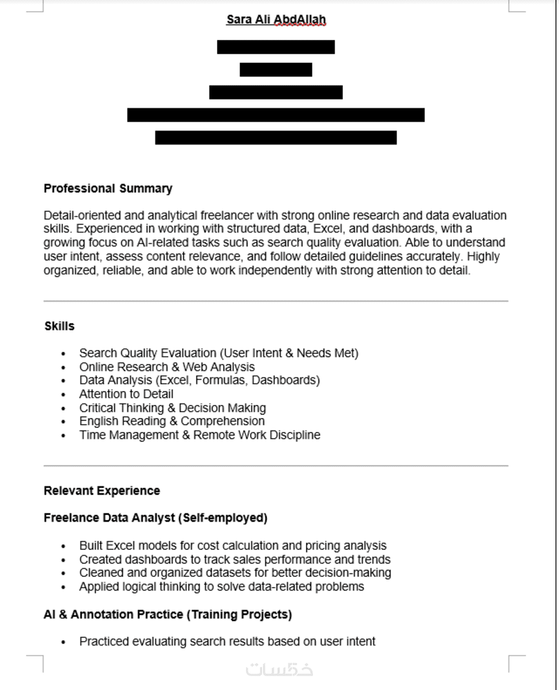 لا تشمل الخدمة كتابة خبرات وهمية أو بيانات غير حقيقية