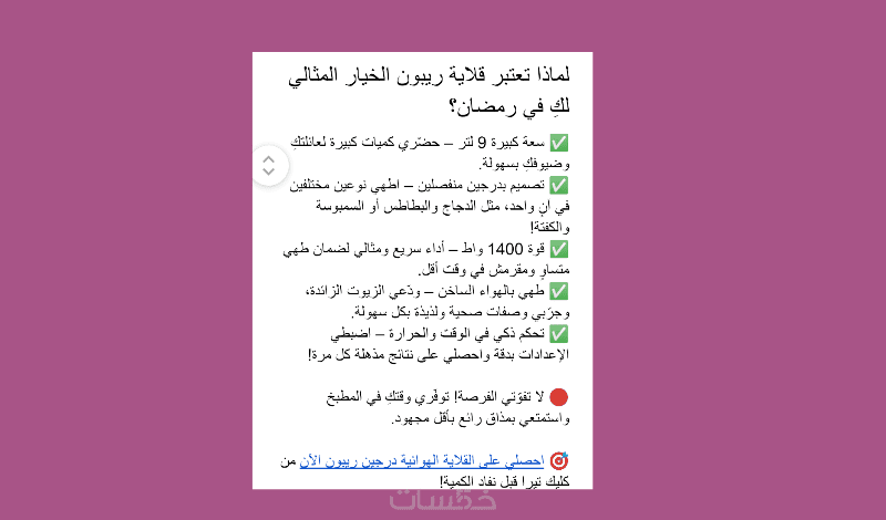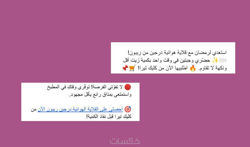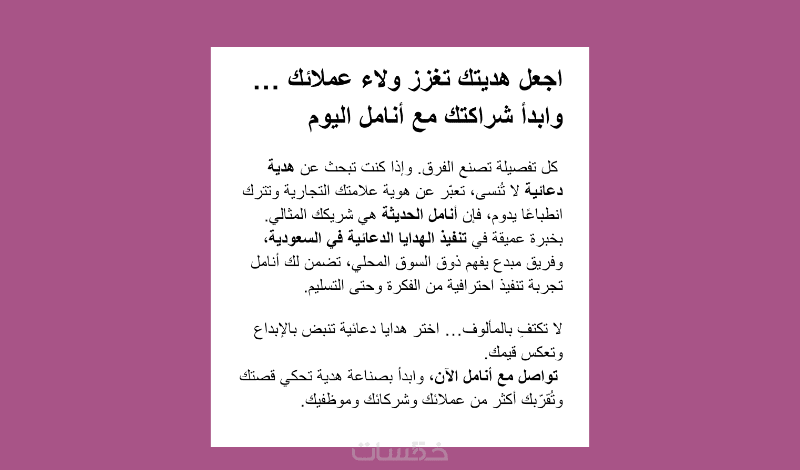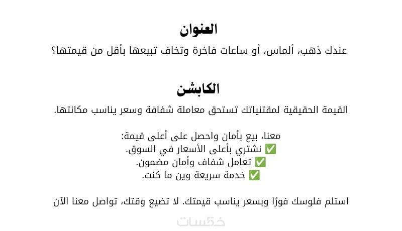 يخاطب النص الإعلاني الاحترافي المشاعر ويتفهم احتياجات الجمهور مسلطا الضوء على الفوائد بما يجعل شراء المنتج هي خطوة الزائر التالية بلا تردد.