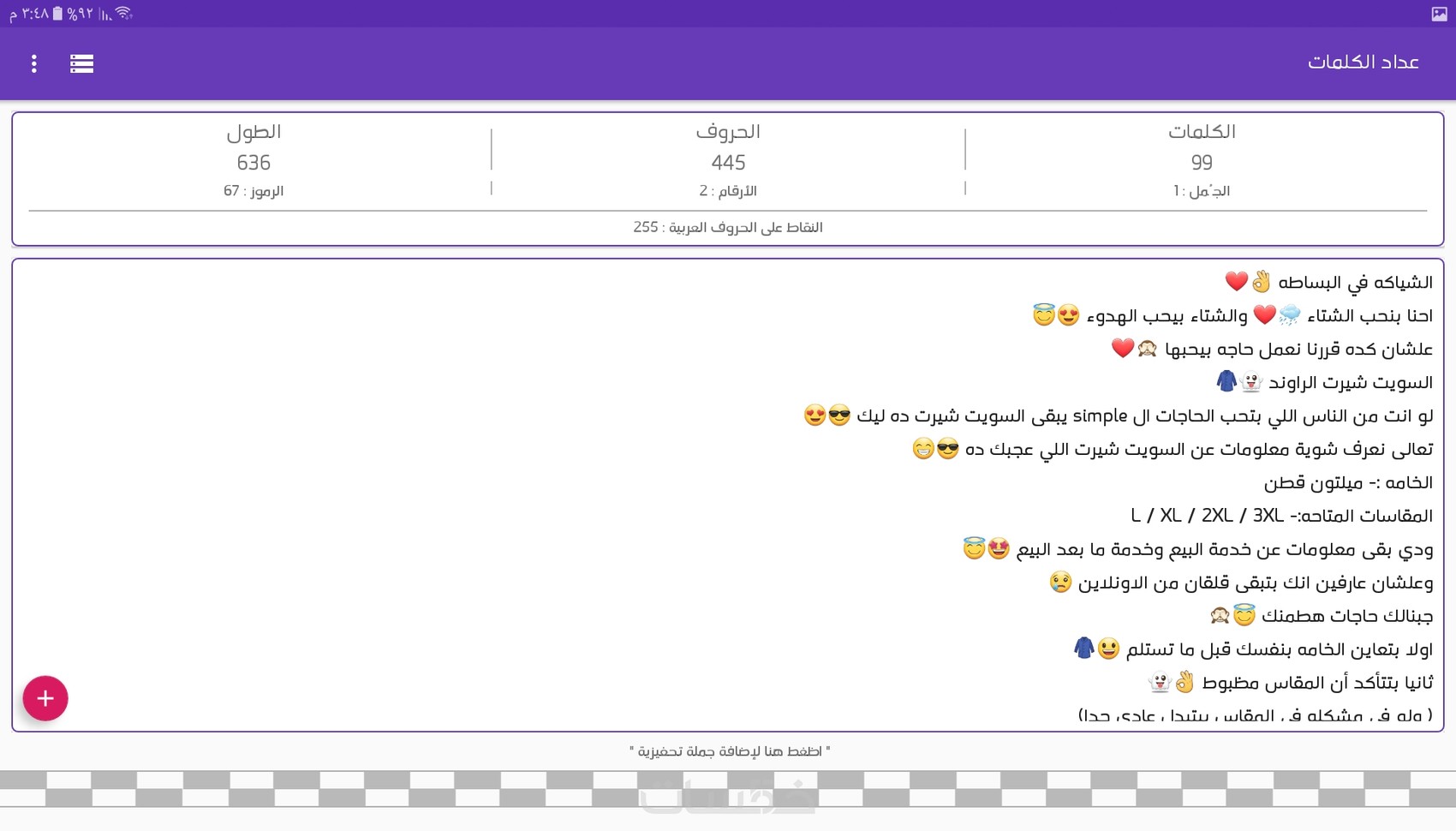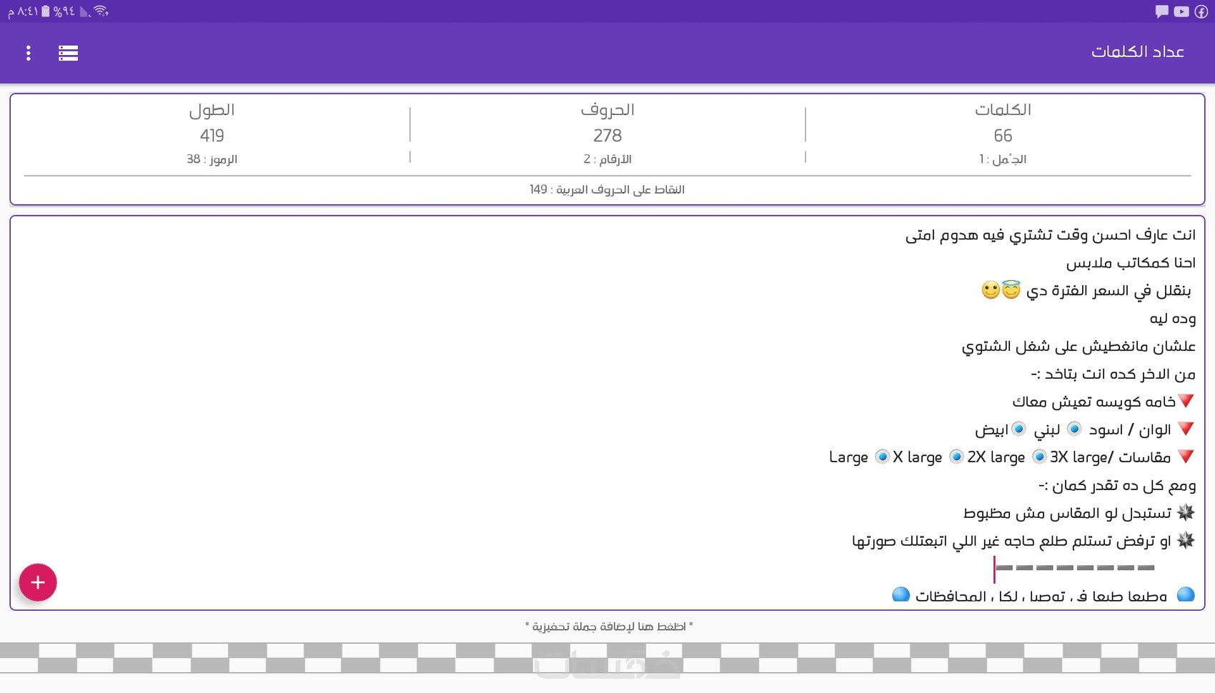 البوست الواحد مكون ( من 100 كلمه الى 150 كلمه