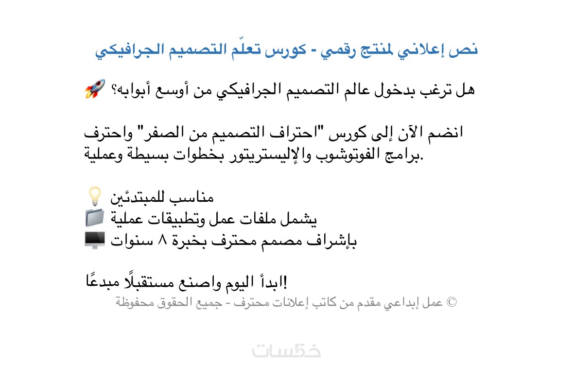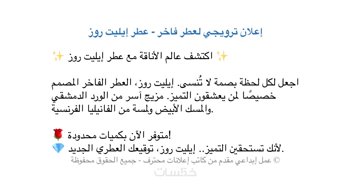• إعلان تسويقي مكتوب بجودة عالية (من 30 إلى 100 كلمة)