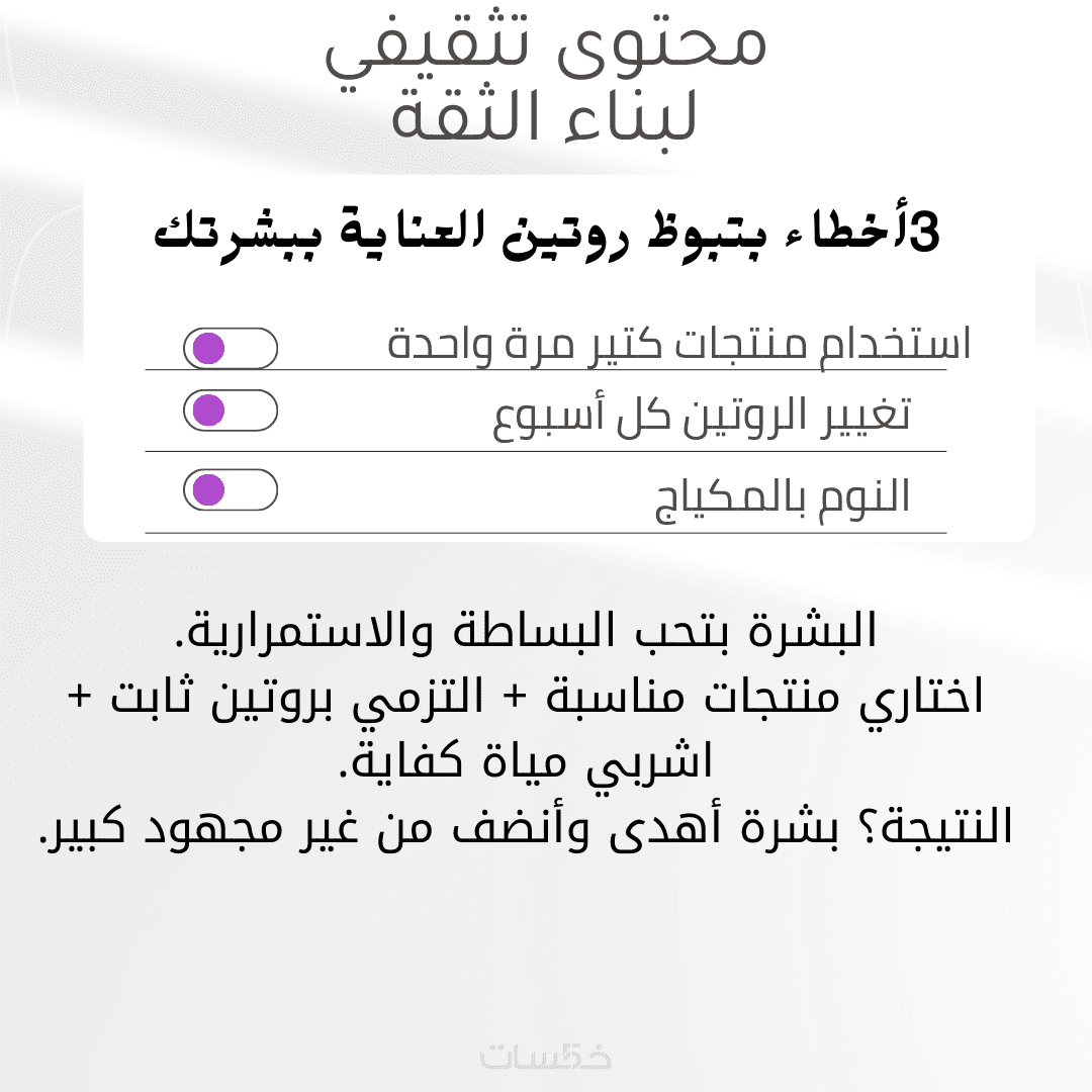 خطة محتوى أسبوع 7منشورات(فكرة +نص من ١٠٠ـ١٥٠ كلمة لكل منشور )