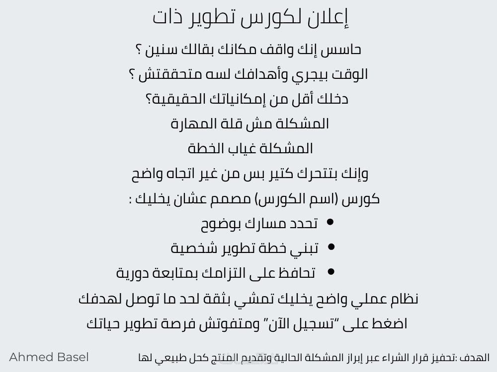 لكني أضمن لك كتابة إعلان مبني على أسس تسويقية سليمة يزيد فرص التحويل بشكل كبير