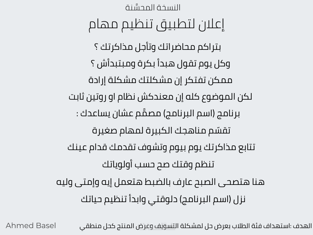 الإعلان الأساسي جذاب ومقنع ولكن في حالة الرغبة في طلب تطويرات إضافية يرجى التنويه