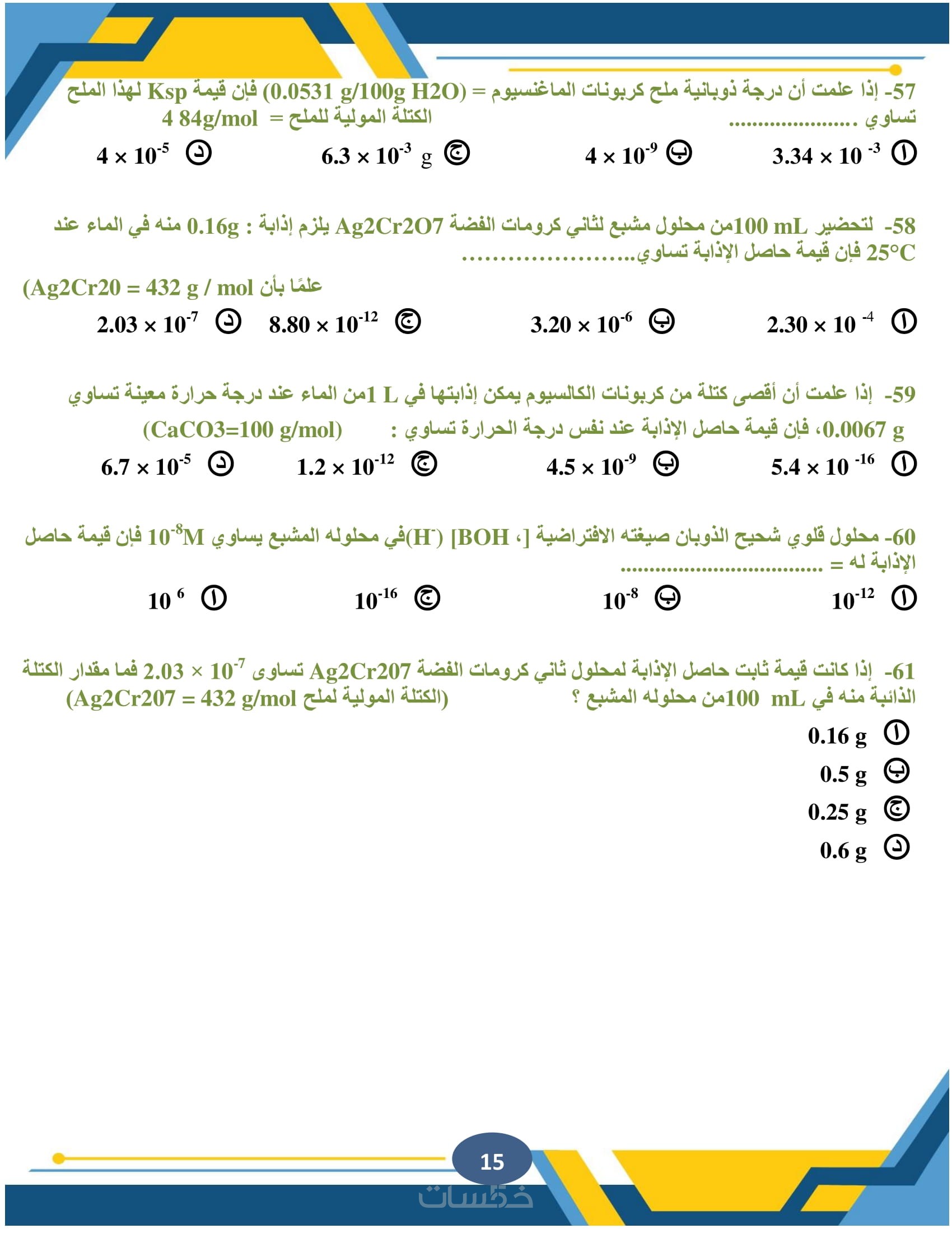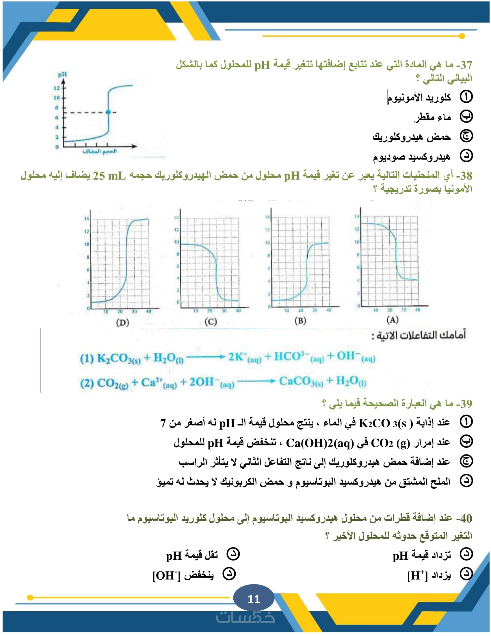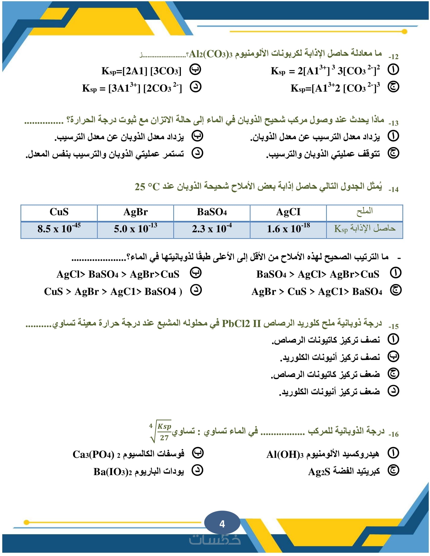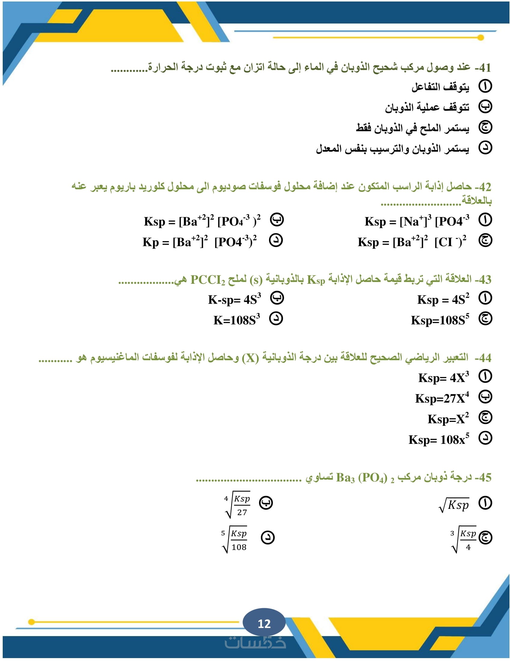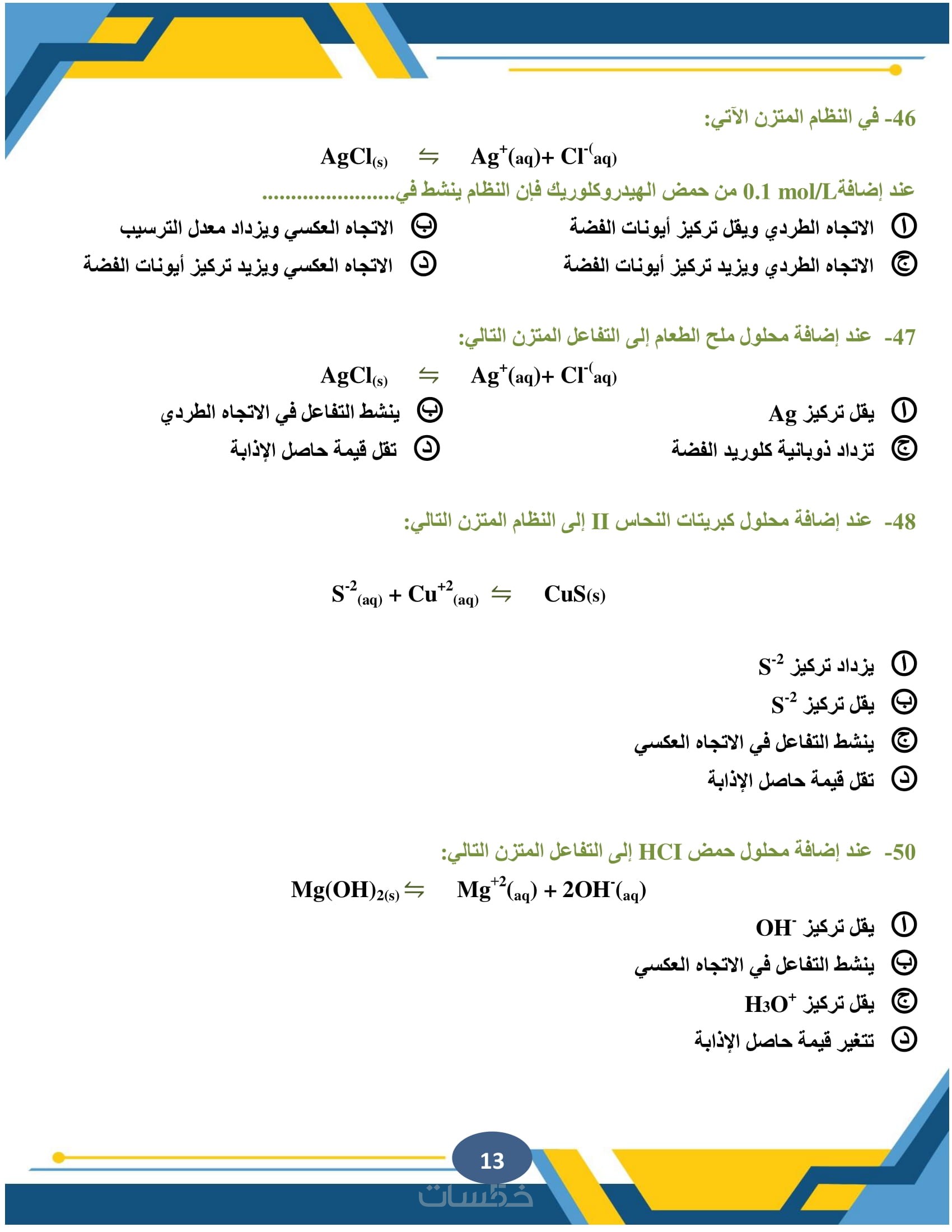 الكيمياء العضوية وغير العضوية، الكيمياء التحليلية، الكيمياء الفيزيائية، مع كتابة المعادلات الكيميائية المعقدة بوضوح ودقة متناهية.