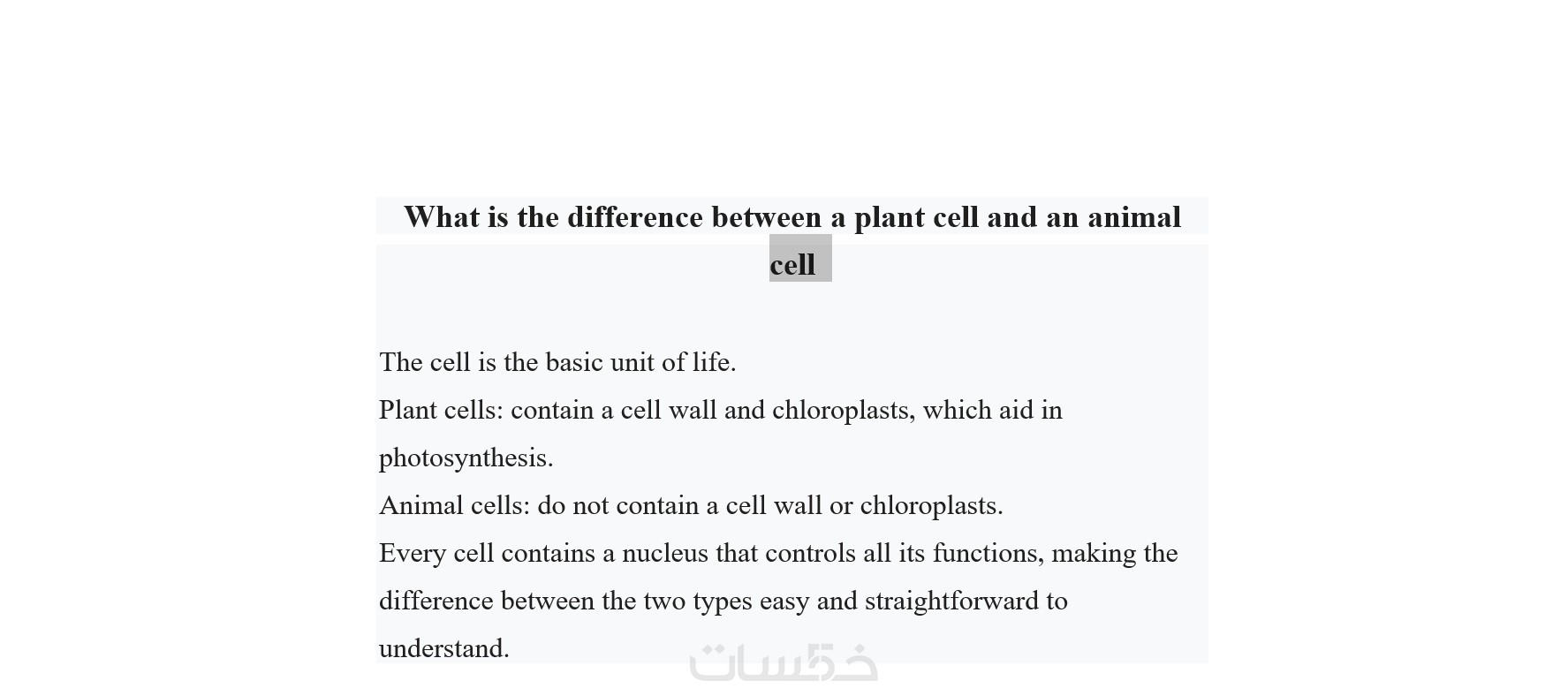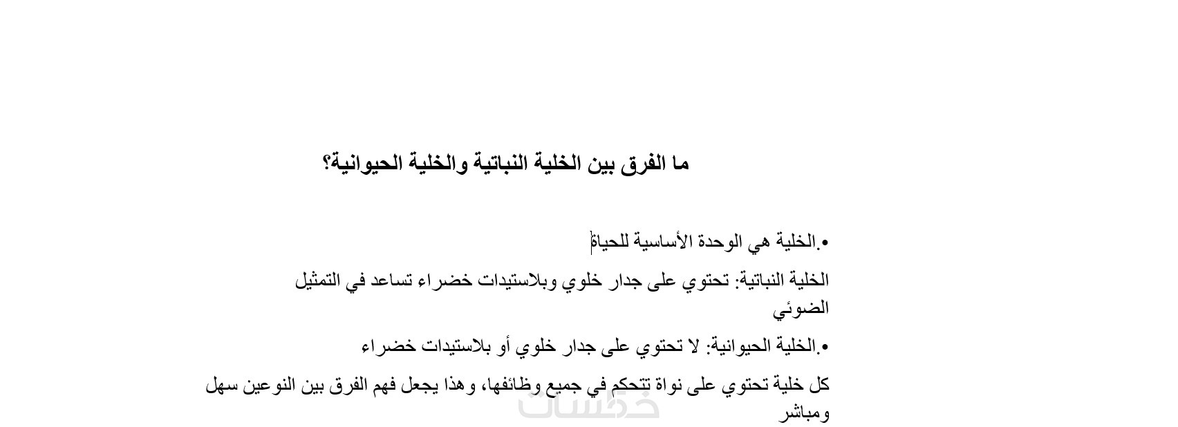 النموذج الأول: ما الفرق بين الخلية النباتية والخلية الحيوانية؟