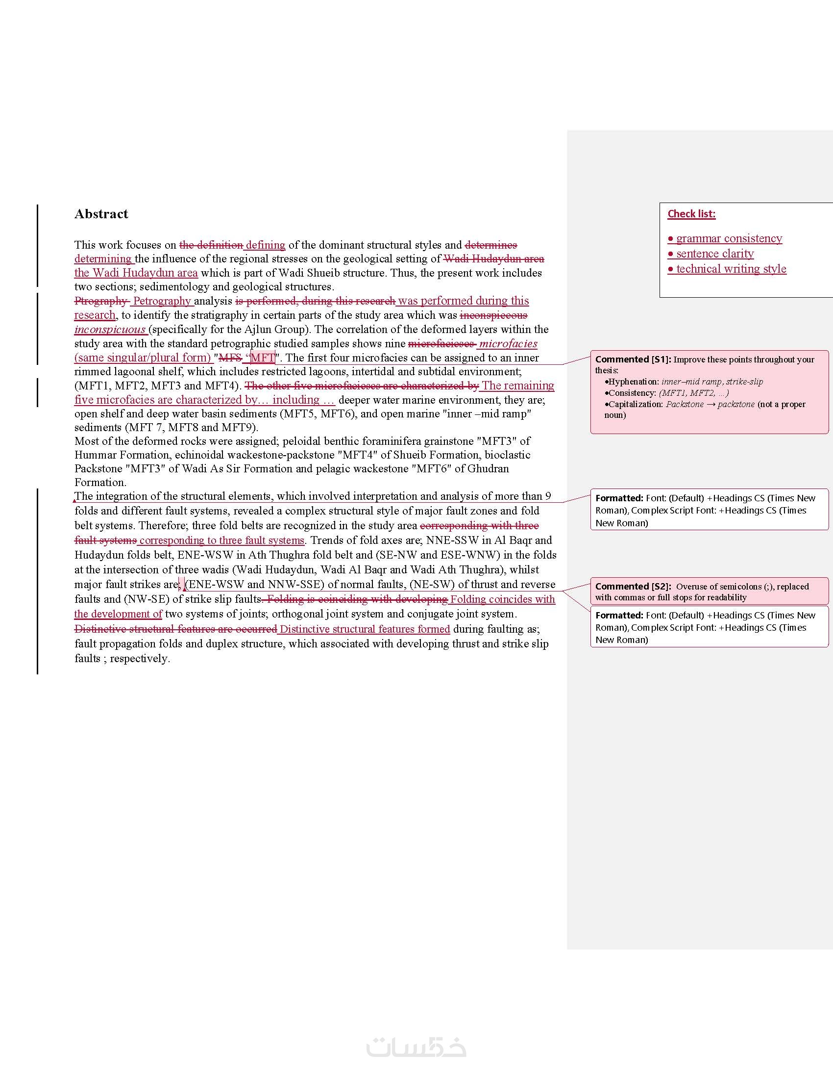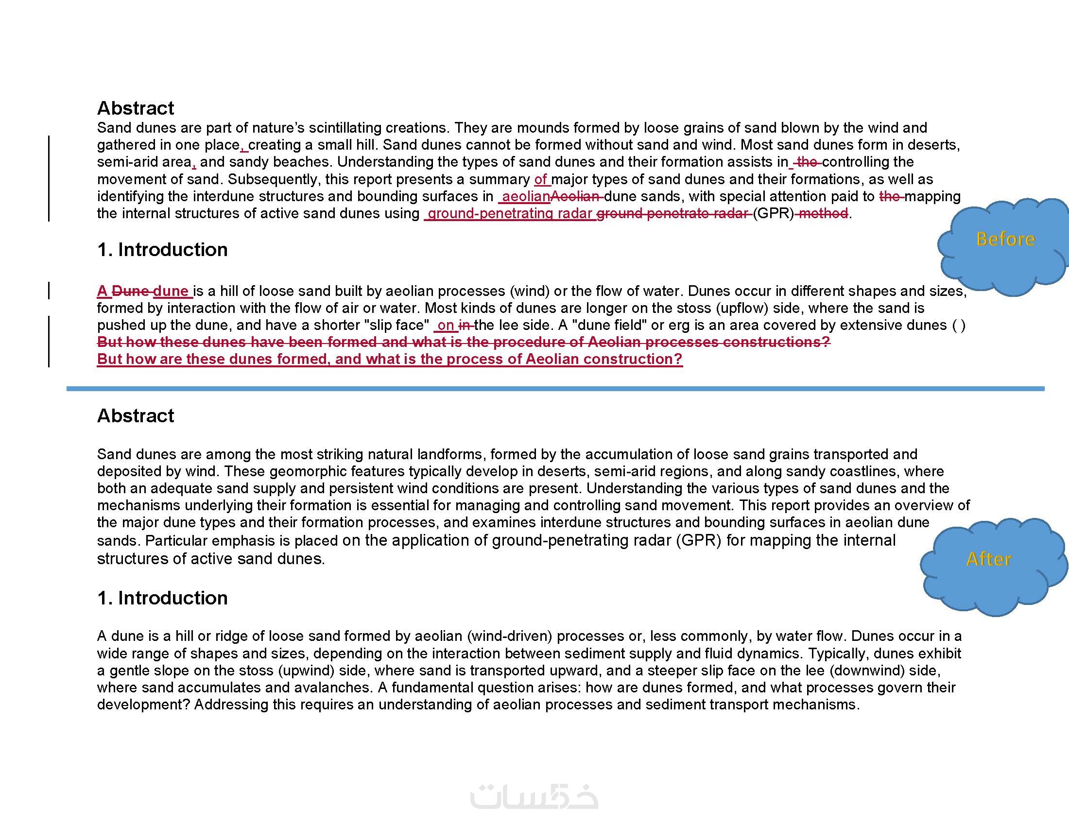 أقدم خدمة مراجعة وتدقيق لغوي وأكاديمي احترافية للتقارير الجيولوجية والمقالات العلمية، مع الالتزام بالدقة المصطلحية والأسلوب العلمي الرصين.