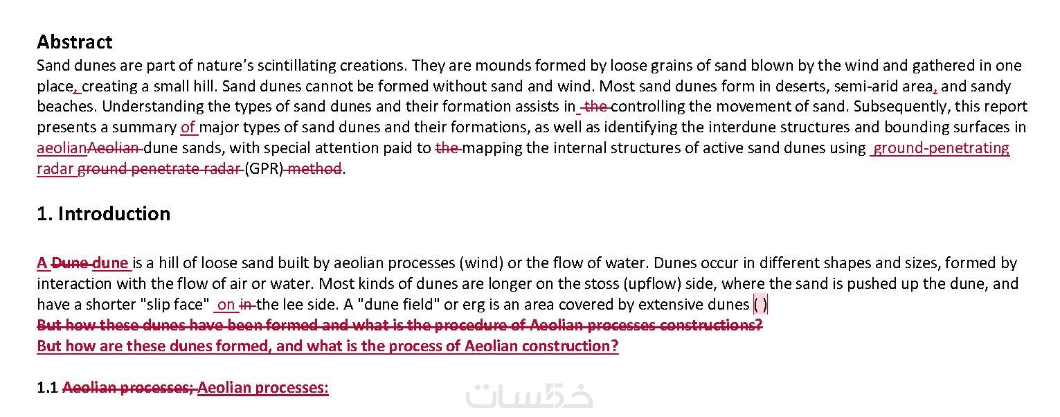 - مراجعة تقرير جيولوجي أو علمي واحد( عدد الصفحات: 10 صفحات (بخط Arial أو Times New Roman، حجم 12، مسافة مفردة).