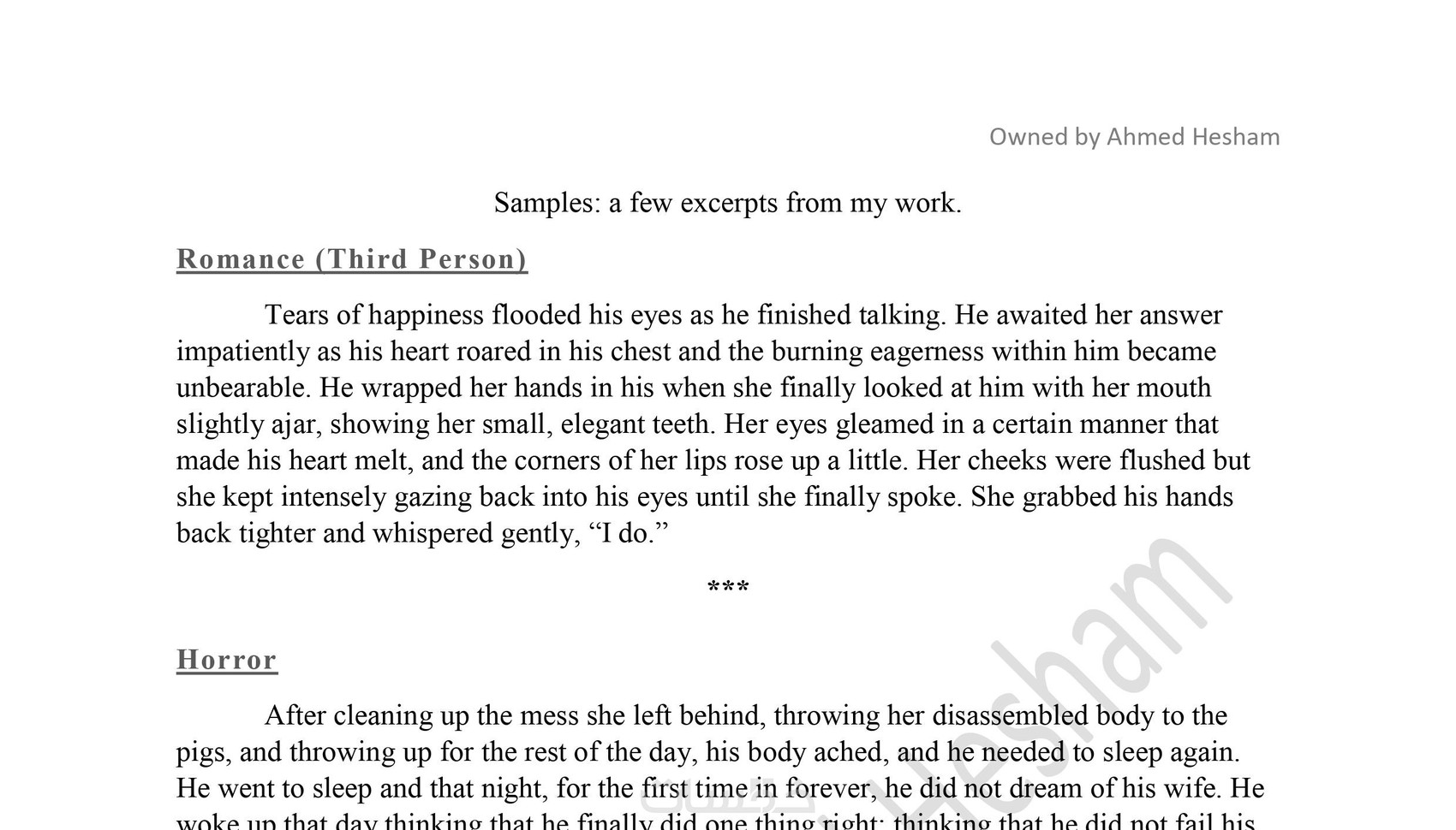أحظى على شهادة البكالوريوس في فنون اللغة الإنجليزية ولدي أكثر من 5 سنوات من الخبرة في الكتابة الإحترافية, أنا متخصص في كتابة القصص والروايات القصيرة و الأعمال الأدبية التي تدور حول أماكن أو مغامرات وإذا لزم الأمر يمكنني تقديم تصحيحات وإعادة كتابة من خلال تحليل منهجي للأسلوب النحوي والصرفي فهذا يعني أنه إذا كان هناك شيء يحتاج إلى بعض التغيير والتبديل ، فسوف أقوم بإصلاحه.