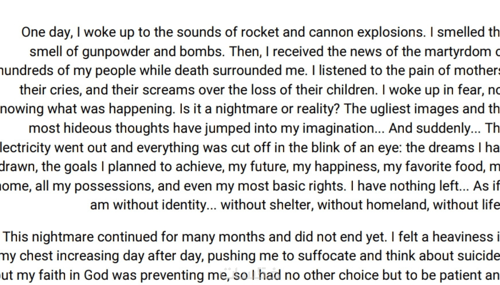 السلام عليكم ورحمة الله وبركاته، معكم ريم كاتبة إبداعية من فلسطين، أهوى الكتابة منذ المراهقة! كتبتُ ما يزيد عن ثلاثين قصة وشاركت في عديد من المسابقات.. أكتب لكم قصة باللغة الإنجليزية كوني طالبة في هذا القسم وقد شارفتُ على التخرج. تتميز خدمتي المتواضعة بالتالي: