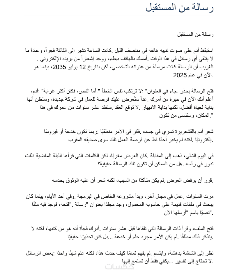 قصة قصيرة إبداعية أصلية (من 300 إلى 500 كلمة)