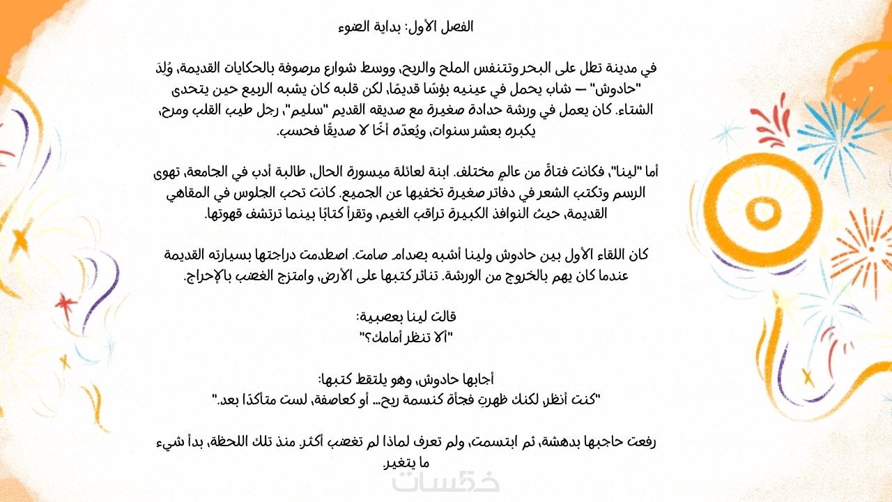 كتابة قصة او رواية مؤلفة من 1500 كلمة