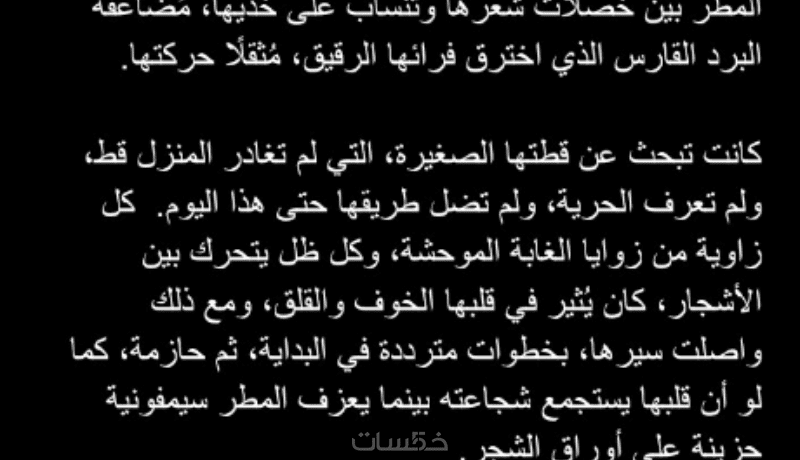 قصة قصيرة من 500 إلى 800 كلمة، مقسّمة إلى مقاطع مشوّقة تثير الفضول حتى النهاية.