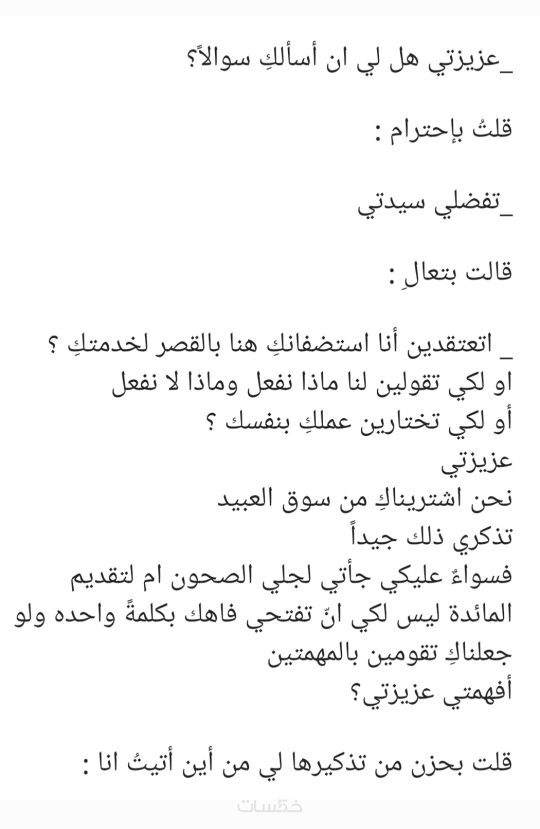 لا أقدّم روايات كاملة (خدمة مقتطفات أو صفحات قصيرة فقط)