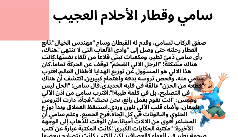 في هذه الخدمة يتم تقديم قصة أطفال أصلية مكتوبة بأسلوب سهل وجذاب يناسب الأطفال ويجعلهم يستمتعون بالقراءة.