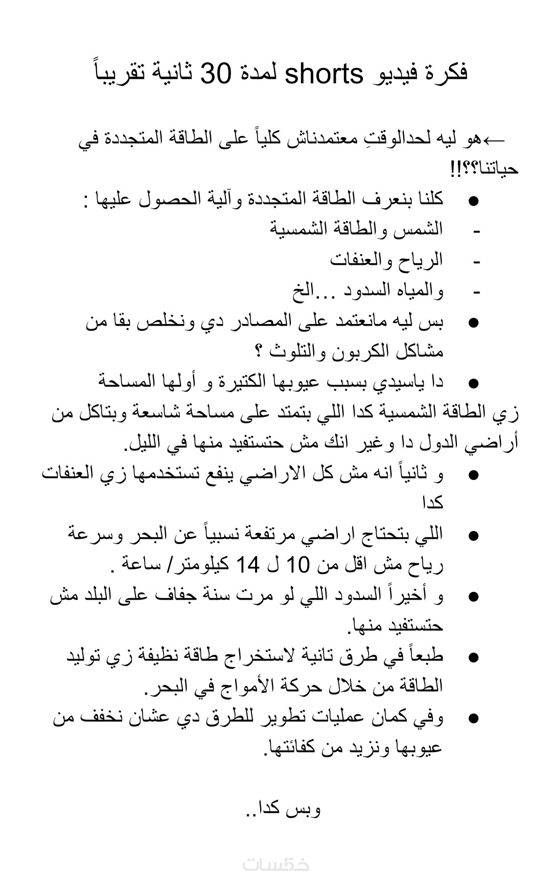 - سأكتب لك محتوى فيديو قصير مدته من 20 ثانية إلى دقيقتان خلال الزمن المذكور.