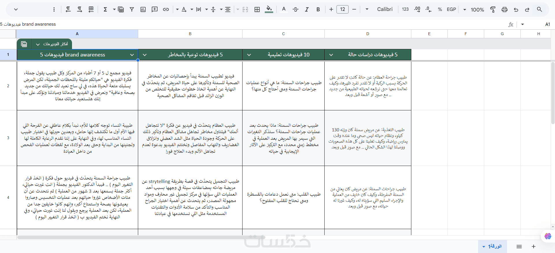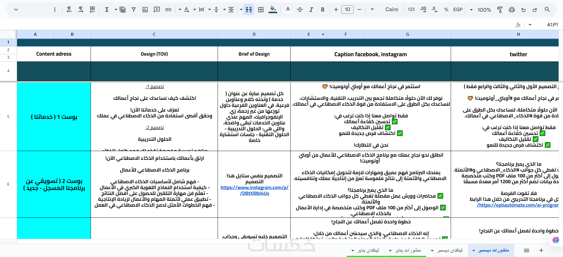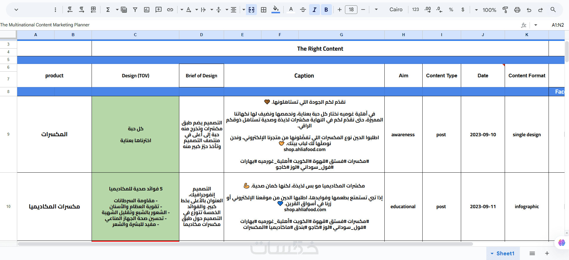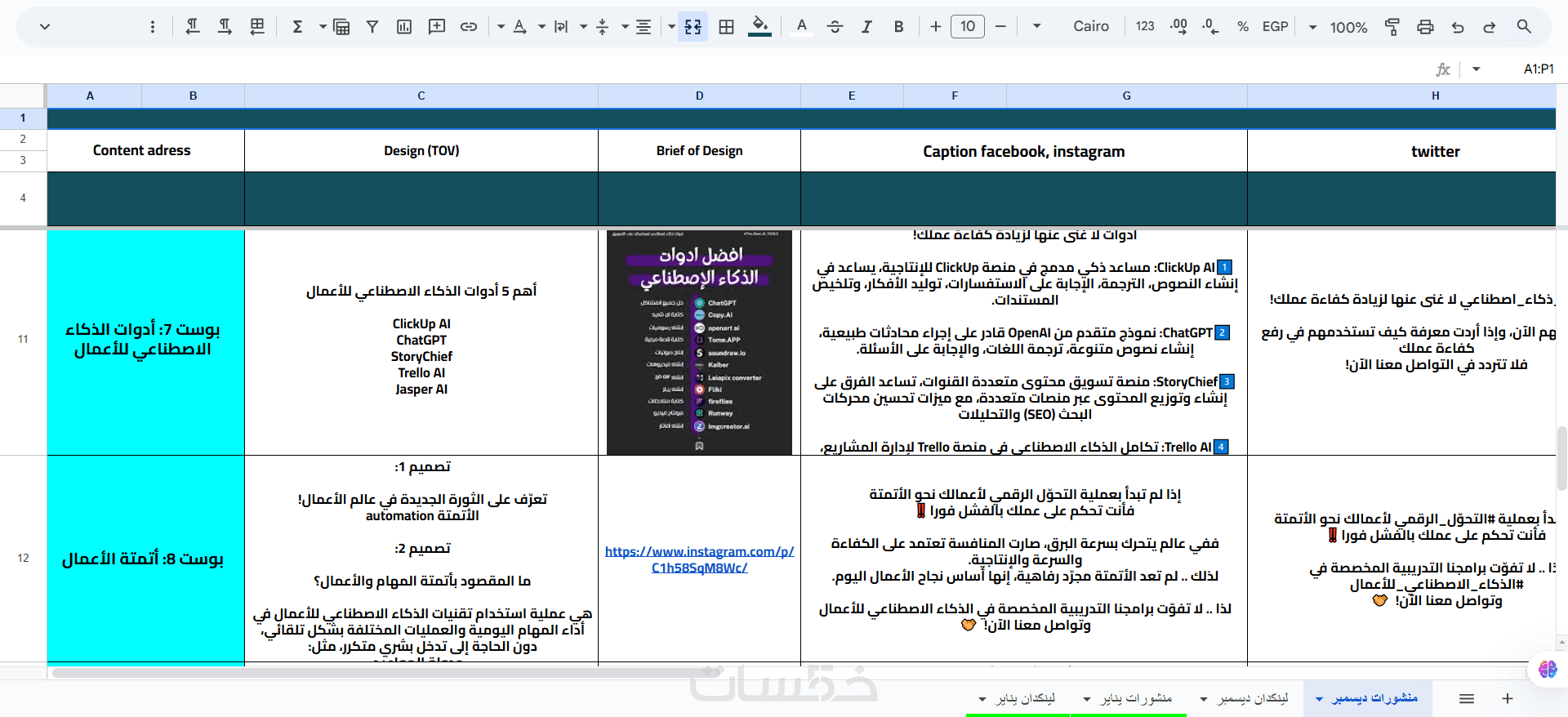 ملف إكسيل جاهز بالمحتوى كاملا ومواعيد النشر كما هو موضح في معرض الأعمال