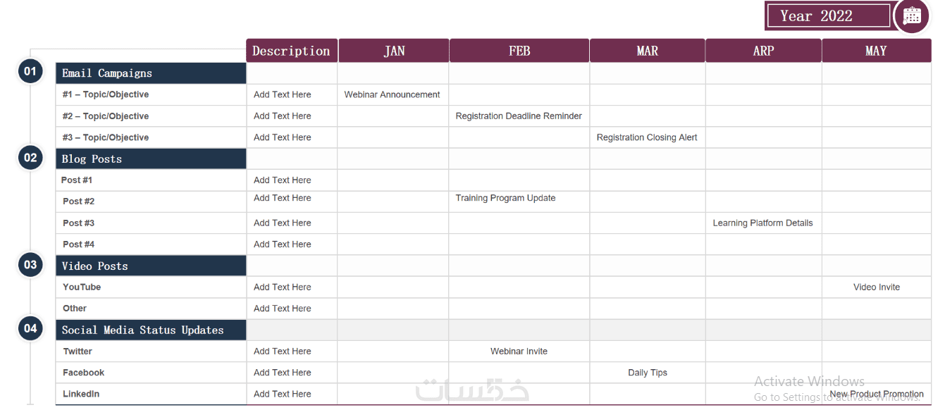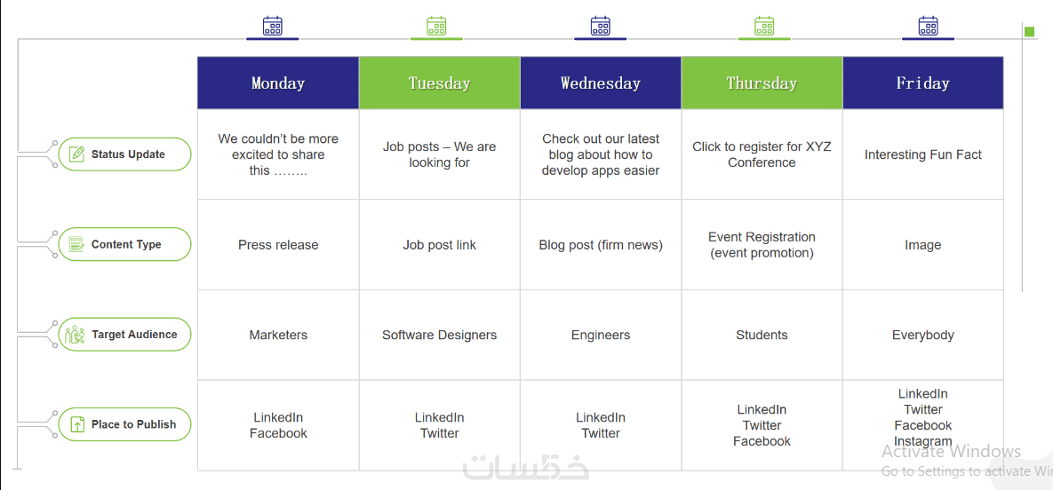 تقويم محتوى مبدئي (أسبوعين أو شهر)