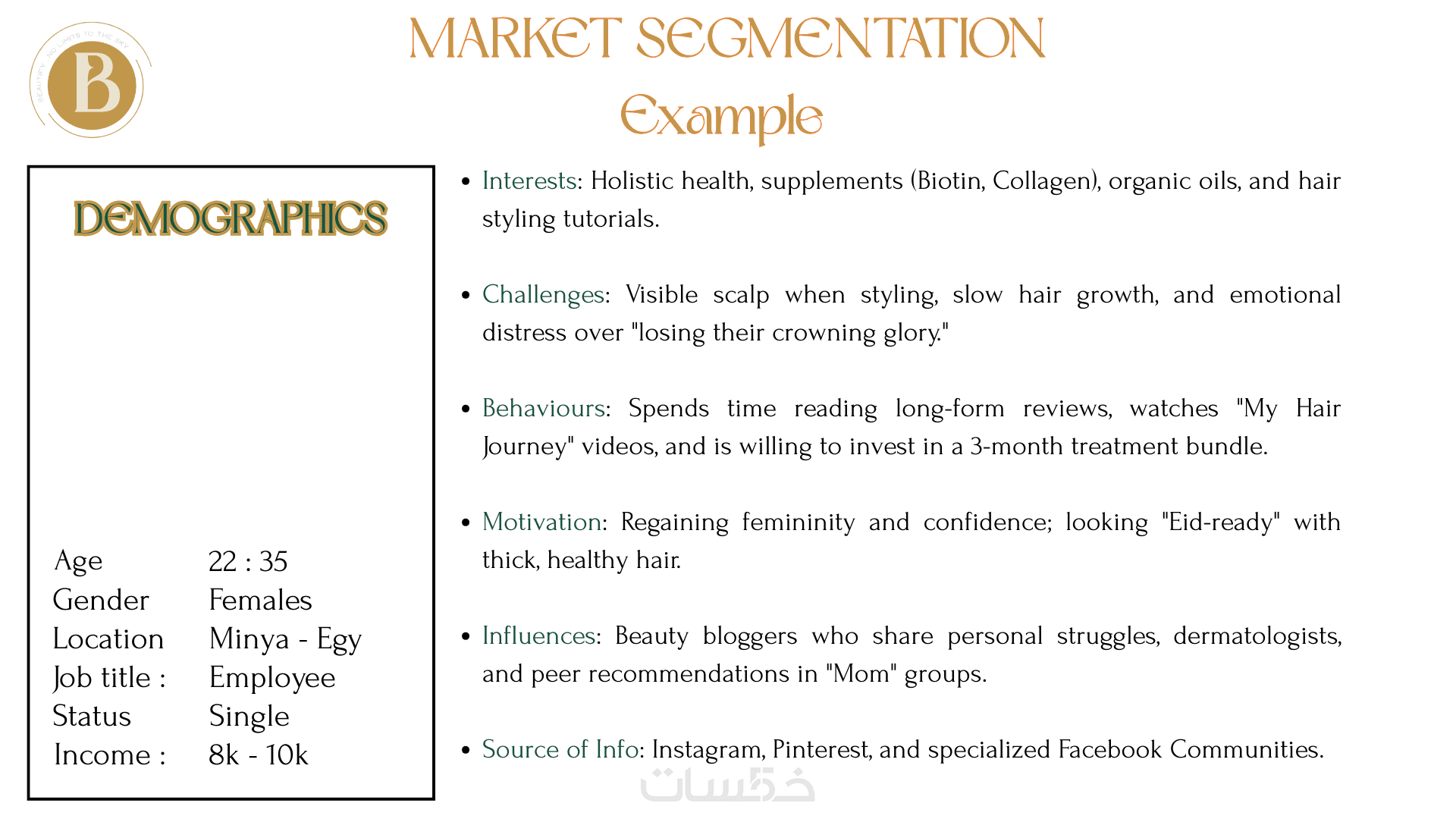 لا أقوم بكتابة محتوى عشوائي، بل أعتمد على تحليل دقيق لجمهورك المستهدف (Market Segmentation) لضمان أن كل منشور يخاطب احتياجاتهم الحقيقية.