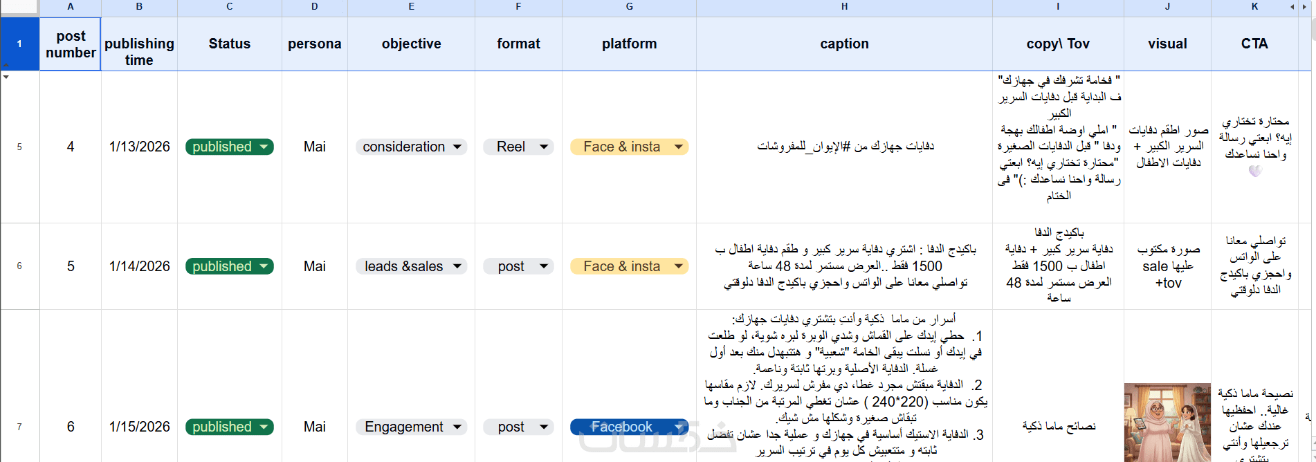 جدول محتوى منظم (Content plan) لمدة 5 أيام.