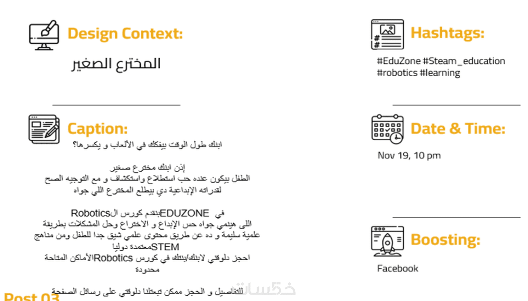 سيكون هناك توجيهات للمصمم و ماذا يكتب علي التصميم و علي أي منصة سيفيدك اكتر كـ إعلانات