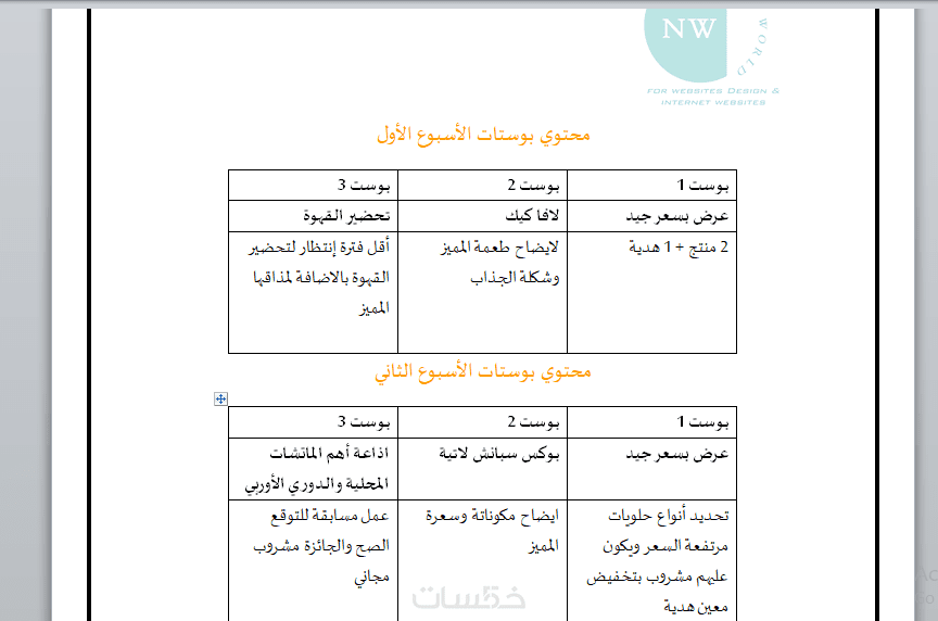 كتابة 3 بوستات مميزة، بمتوسط من 80 إلى 100 كلمة بناءً على المنصة وطبيعة نشاطك.