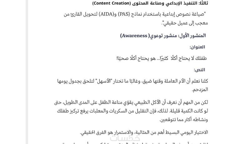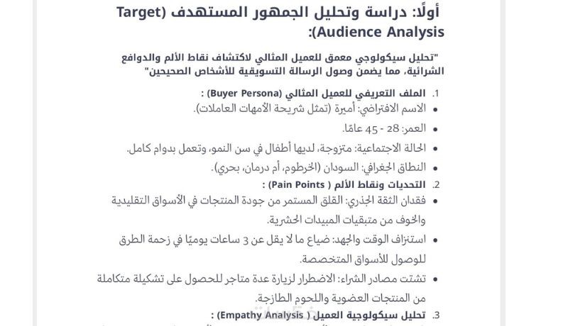 تنبيه: يرجى الاطلاع على "نموذج استراتيجية المحتوى" الشامل لخدمات: التحليل، والخطة الأسبوعية، وكتابة المحتوى، في معرض أعمالي لرؤية جودة التنفيذ ومنهجية العمل التي ساطبقها بناءً على طلبك