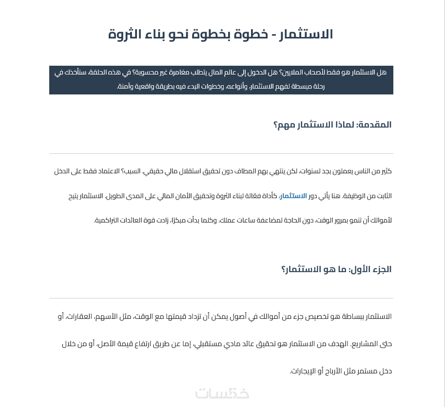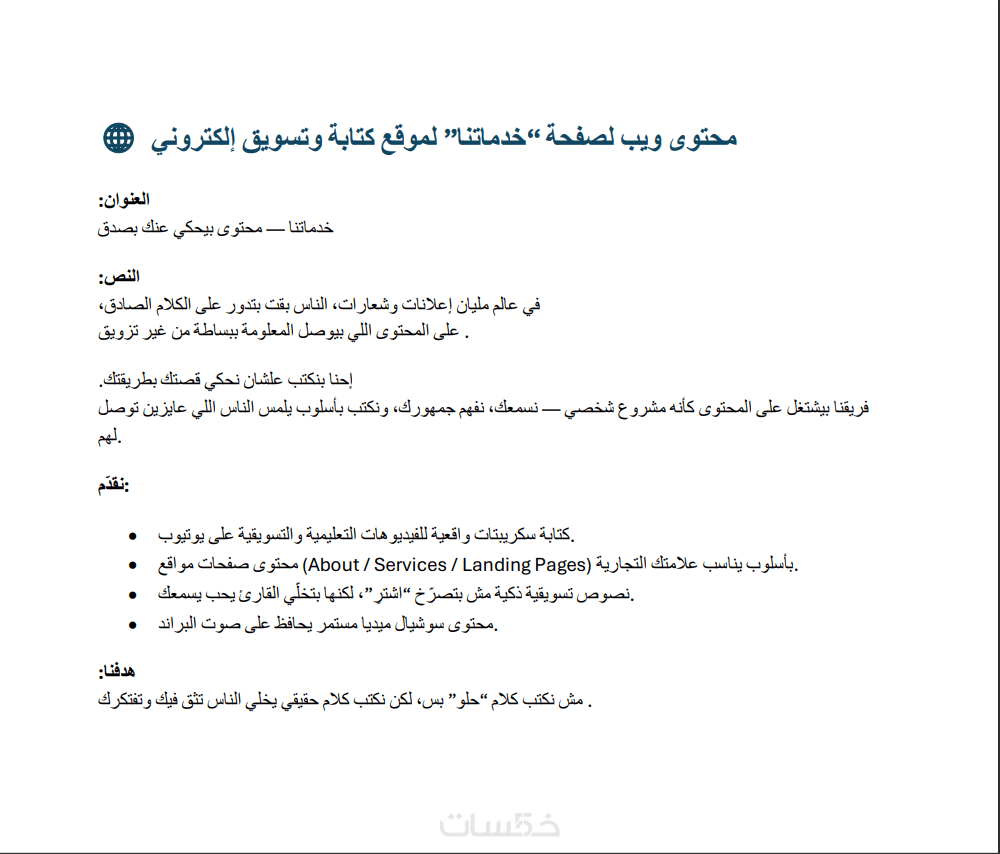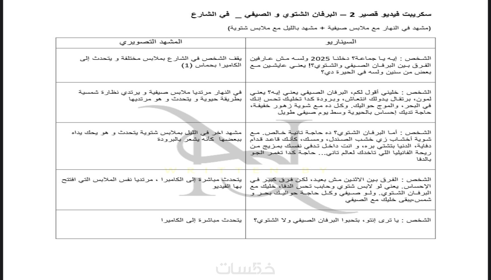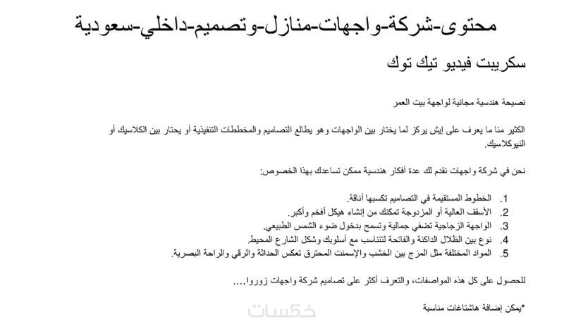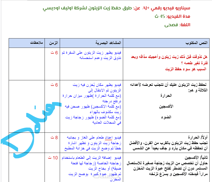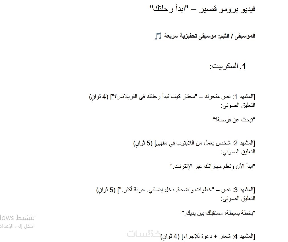 كتابة سيناريو مقطع باللغة العربية الفصحى متوافق مع seo