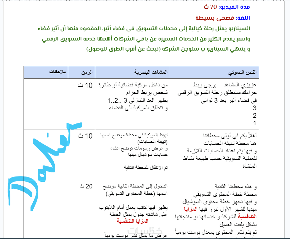 كتابة سيناريو لفيديوهات تعليمية او اى فيديوهات