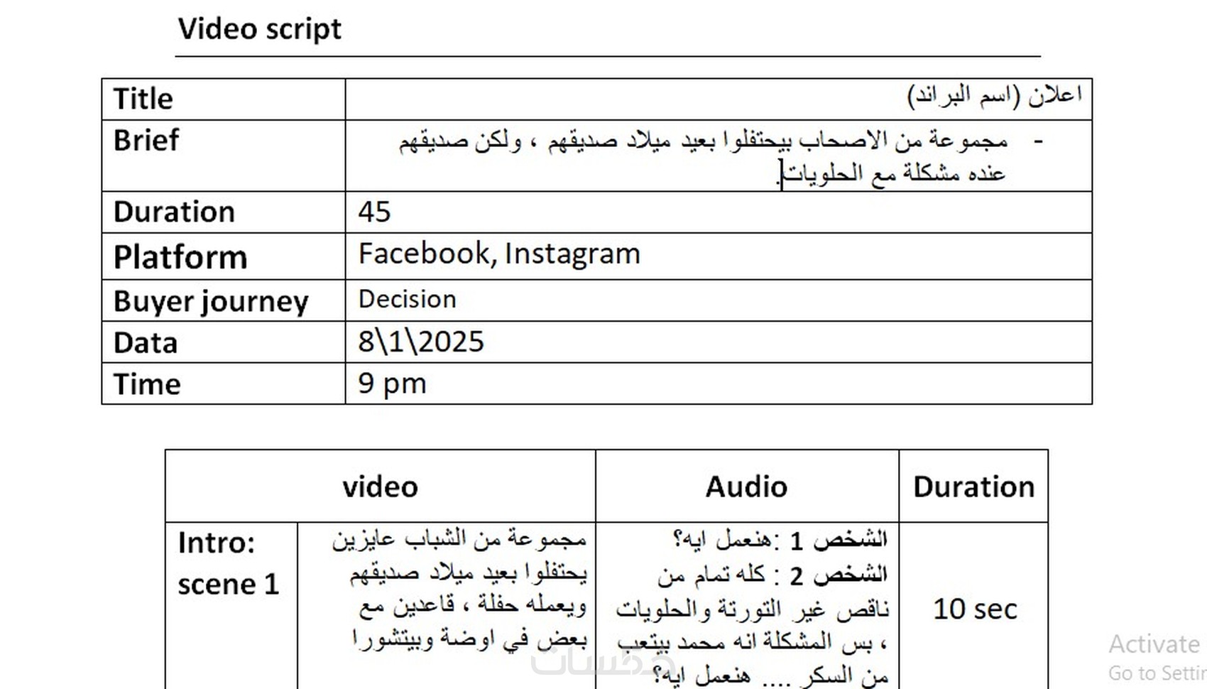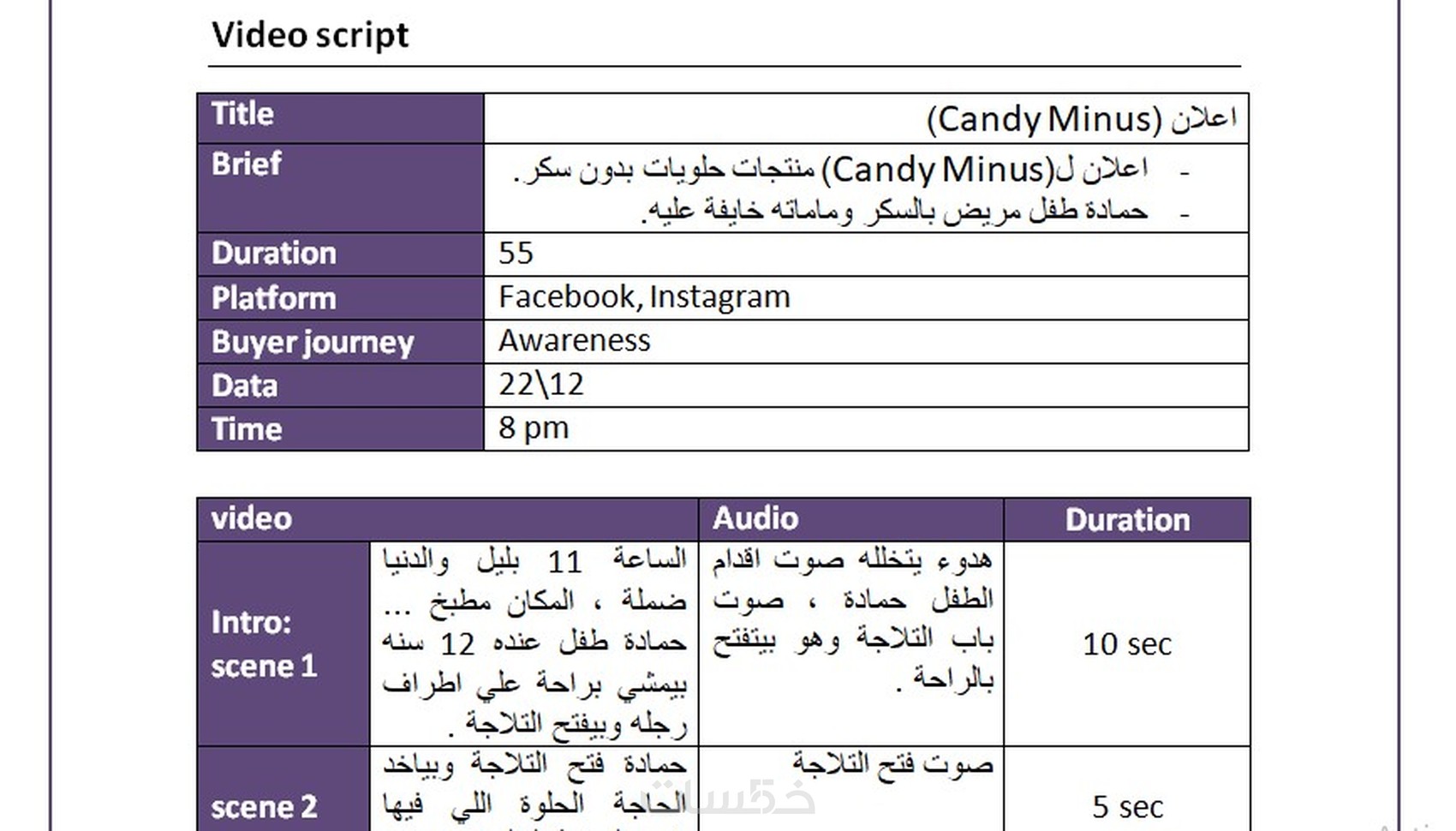 كتابة فيديو سكريبت إعلاني لجميع المنصات باحترافية