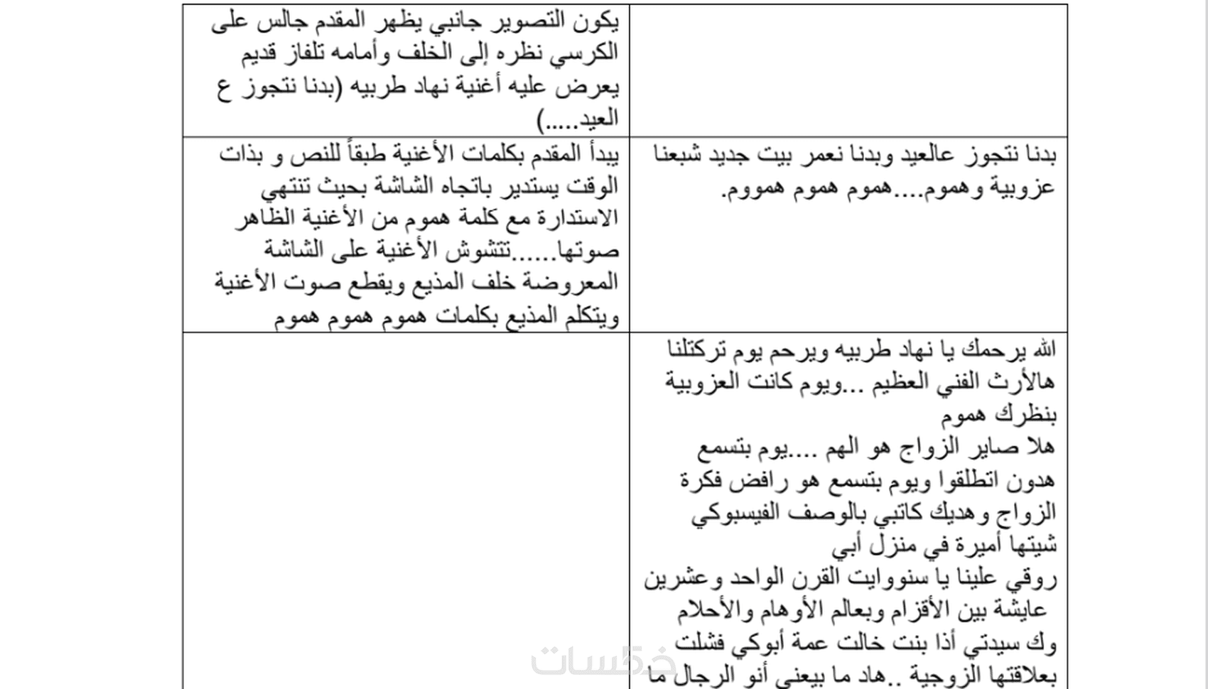 السيناريو النصي: هو السيناريو الذي يتم فيه كتابة النص المنطوق فقط