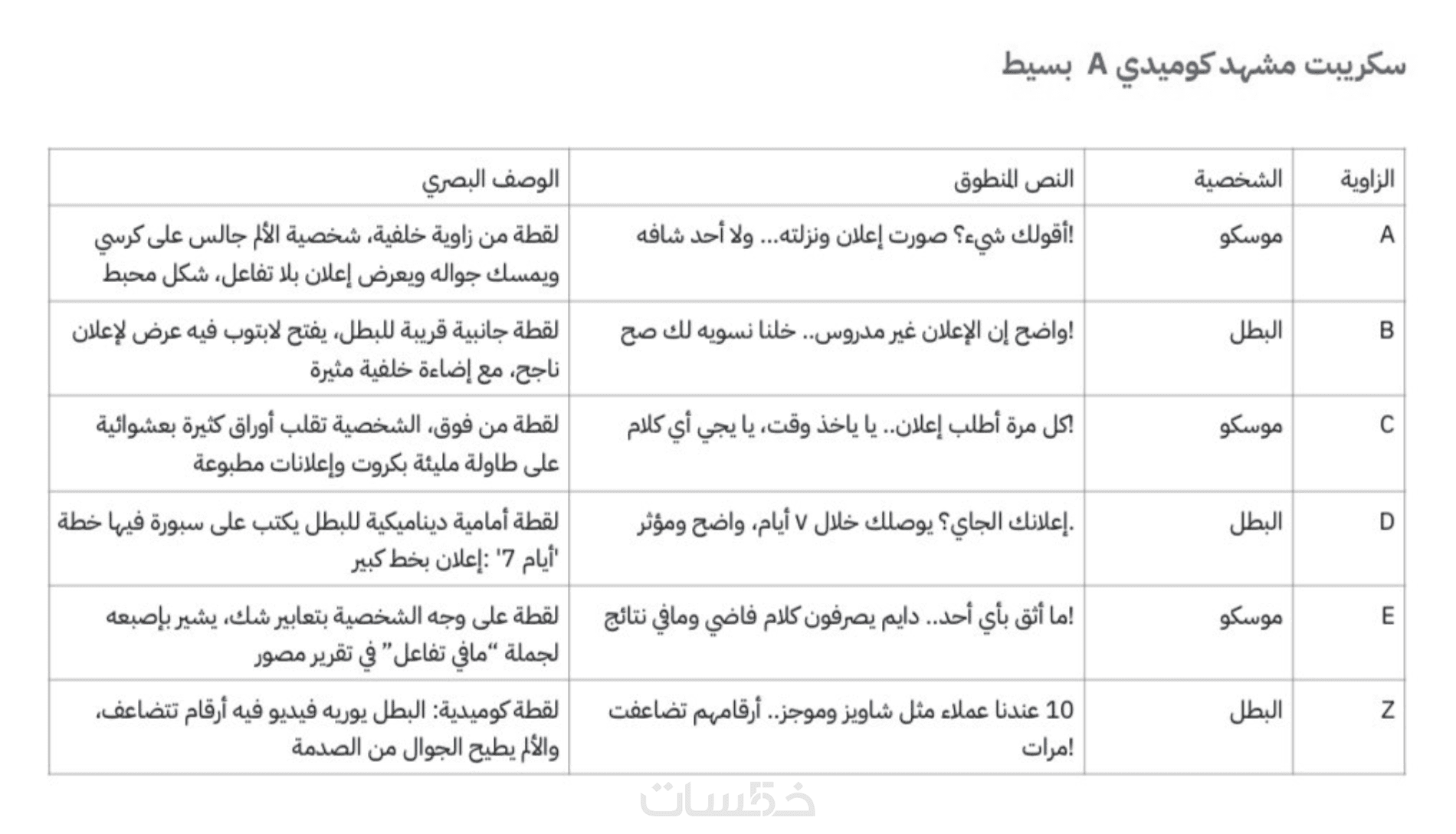 السكربت الواحد يتكون من 4 الى 6 جملة