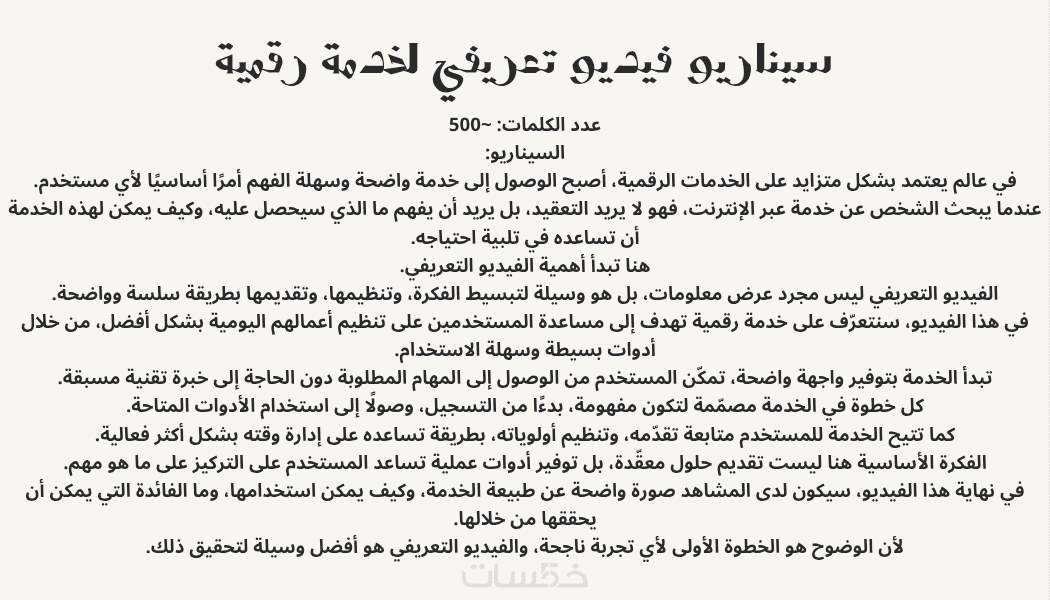 كتابة النص بأسلوب يتناسب مع طبيعة الفيديو، سواء كان تعريفيًا أو إعلانيًا أو مخصصًا للسوشيال ميديا.
