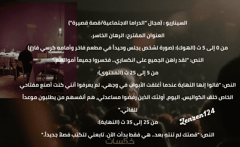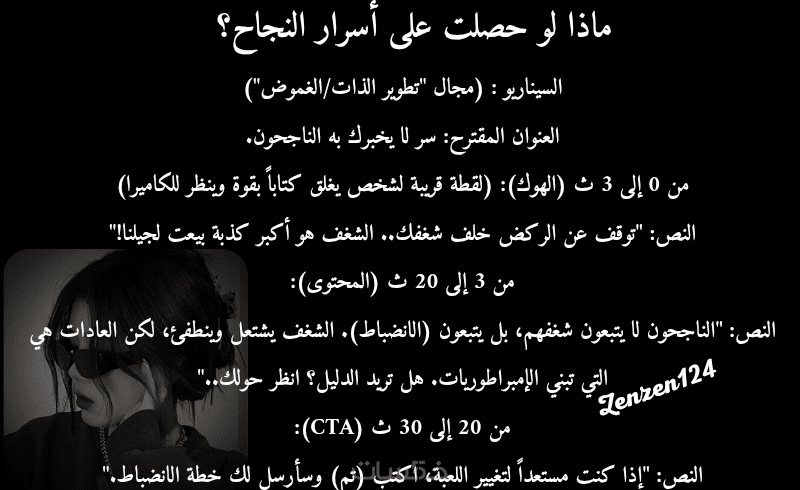 عدد (2) سيناريو احترافي مخصص لمنصات (ريلز/ يوتيوب/تيك توك ).