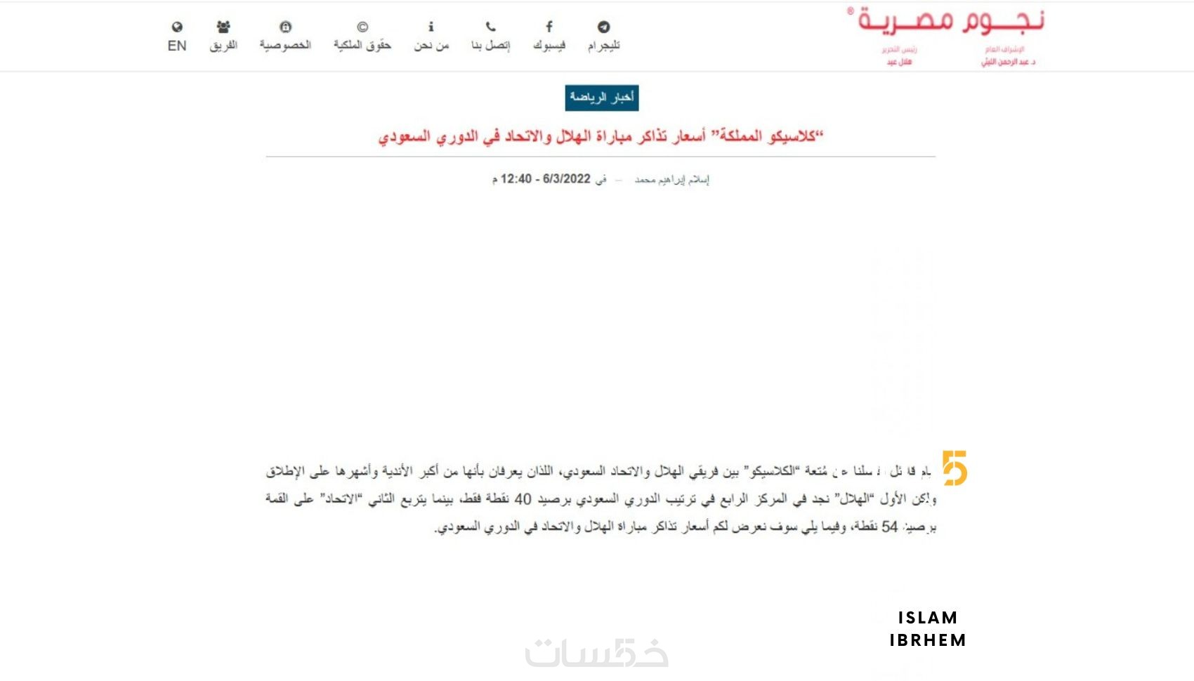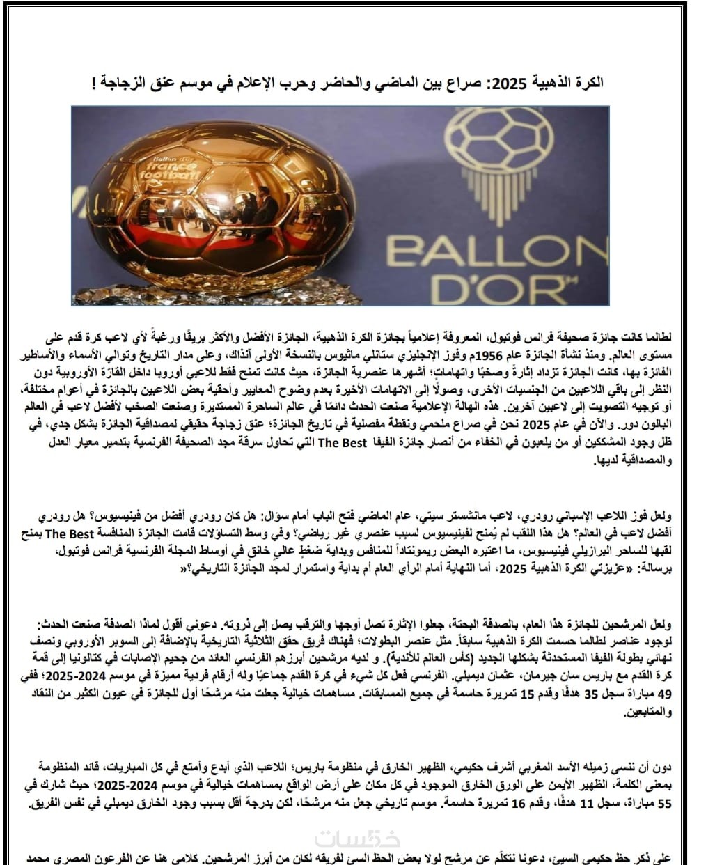 كتابة مقالات رياضية حصرية