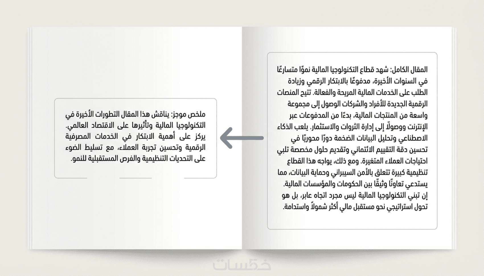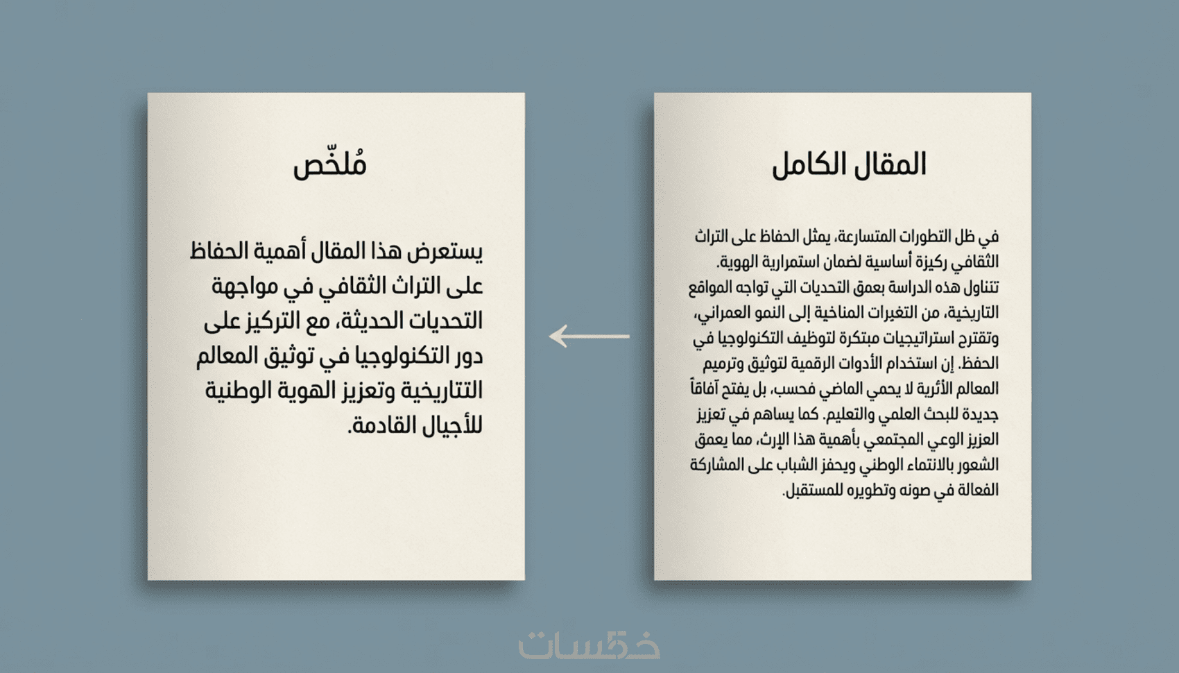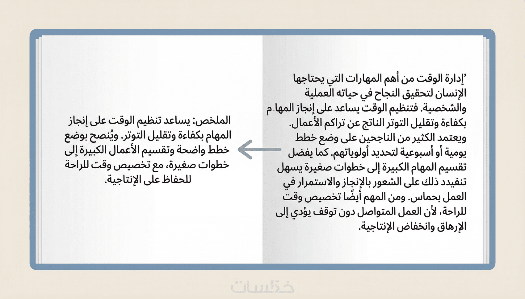 النص الملخص يكون مرتب وواضح وسهل القراءة.