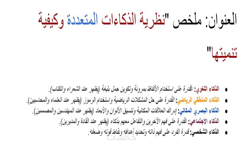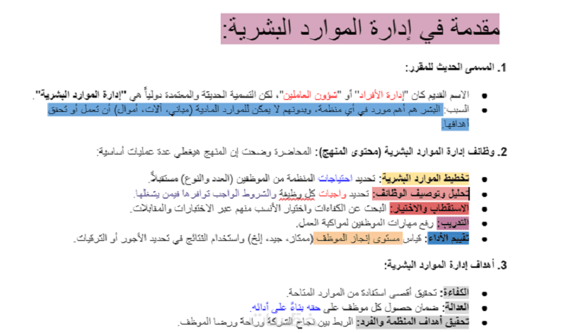 لن تحصل على مجرد نص مصمت، بل سأقوم بتنظيم التلخيص في شكل نقاط (Bullet Points) وعناوين ملونة وواضحة، وتلوين المعلومات المهمة للطلاب لتلفت الأنتباه إليها اولا ، مما يسهل عليك عملية الحفظ والمذاكرة أو المراجعة السريعة.