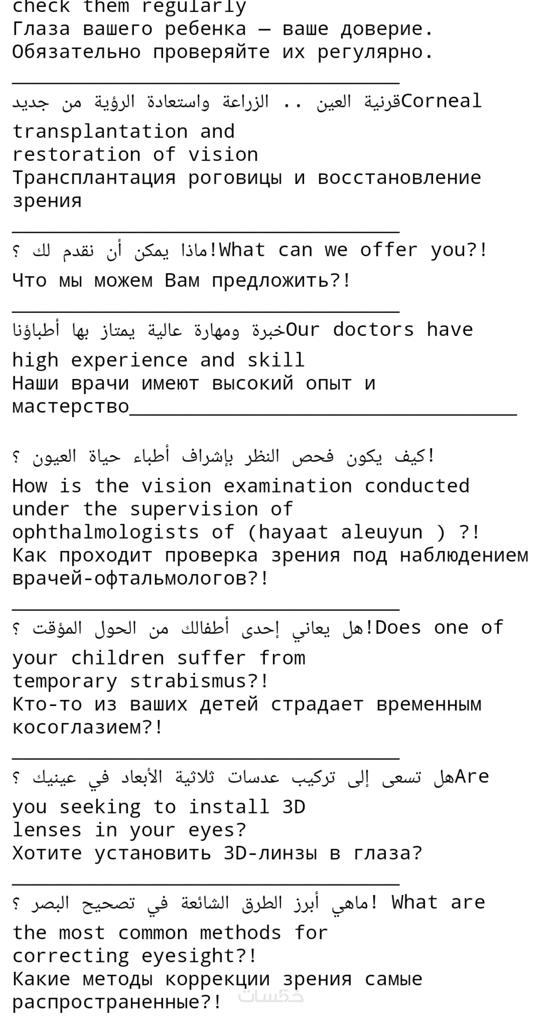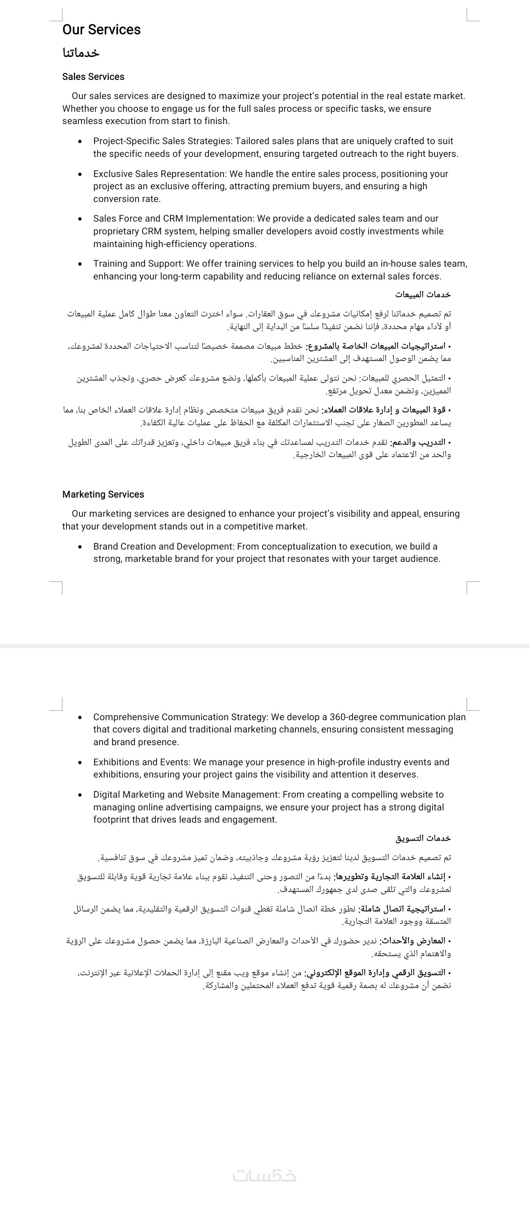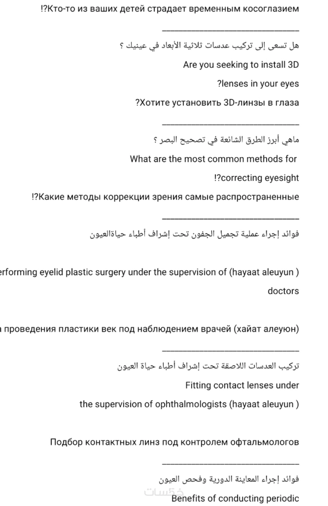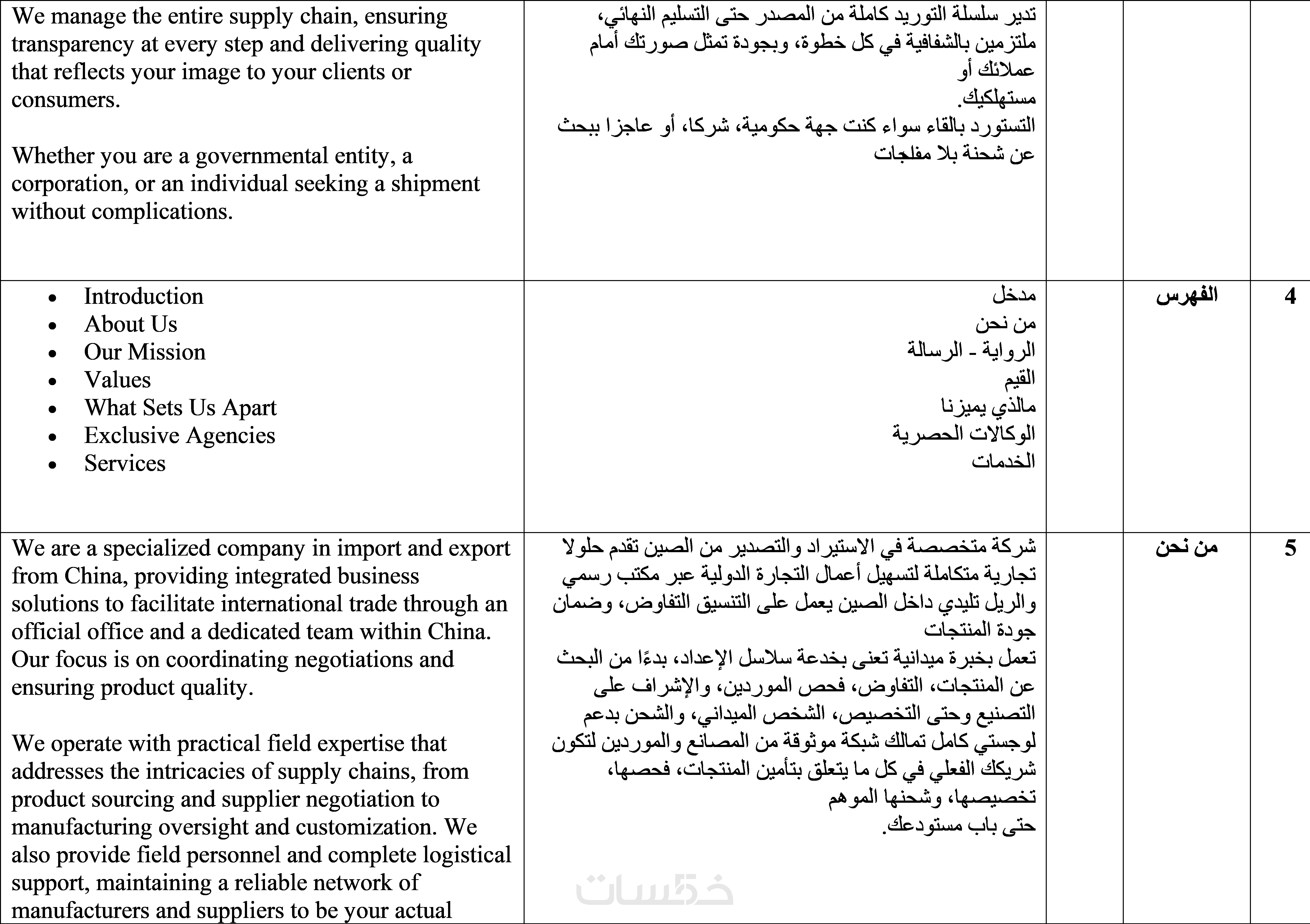 وبالإضافة إلى مجال الترجمة العامة، تغطي خدمات الترجمة مجالات تخصصية متنوعة كالترجمة الطبية والتسويقية والهندسية والتقنية والاقتصادية والأدبية، وتُقدَم الترجمة بعدة لغات من وإلى اللغة العربية.