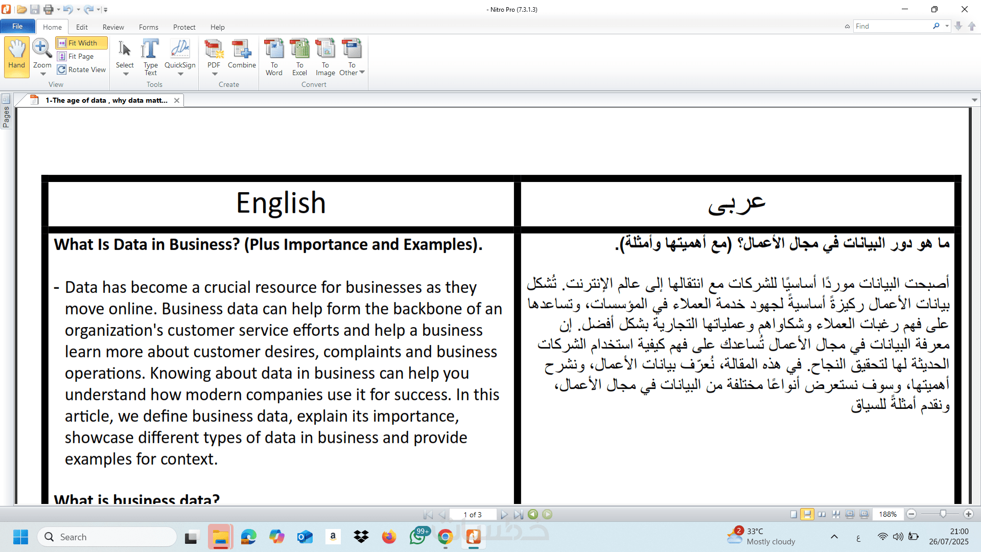 وإذا كنت بحاجة إلى ترجمة متخصصة في المجال الطبي أو التقني أو غيره، فينبغي أن تقرأ النبذة التي يصف بها المترجم مؤهلاته العلمية وخبراته الوظيفية التي تدعم مجال الترجمة المتخصص الذي يعمل به.