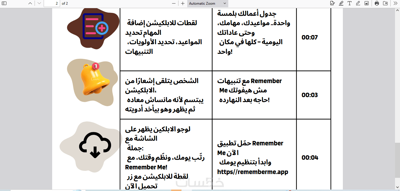 - شخصيات الفيديو والحوار المخصص لكل واحد منهم.