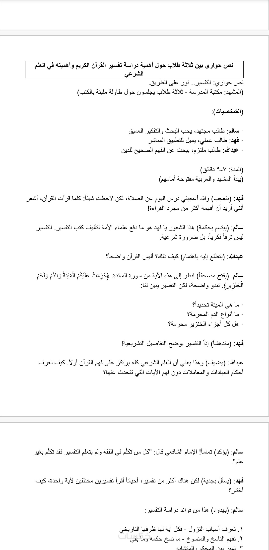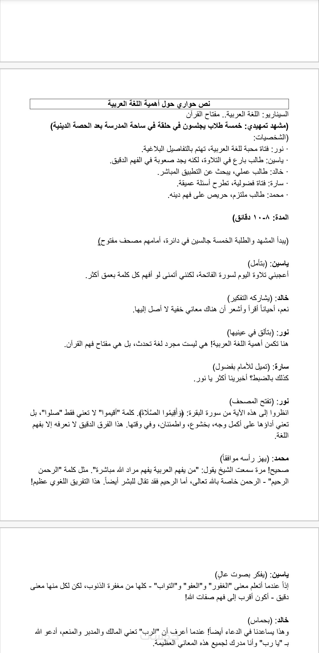 1. ثلاثة نصوص مسرحيات جاهزة للتمثيل تحتوي كل مسرحية ع ٥٠٠ كلمة.