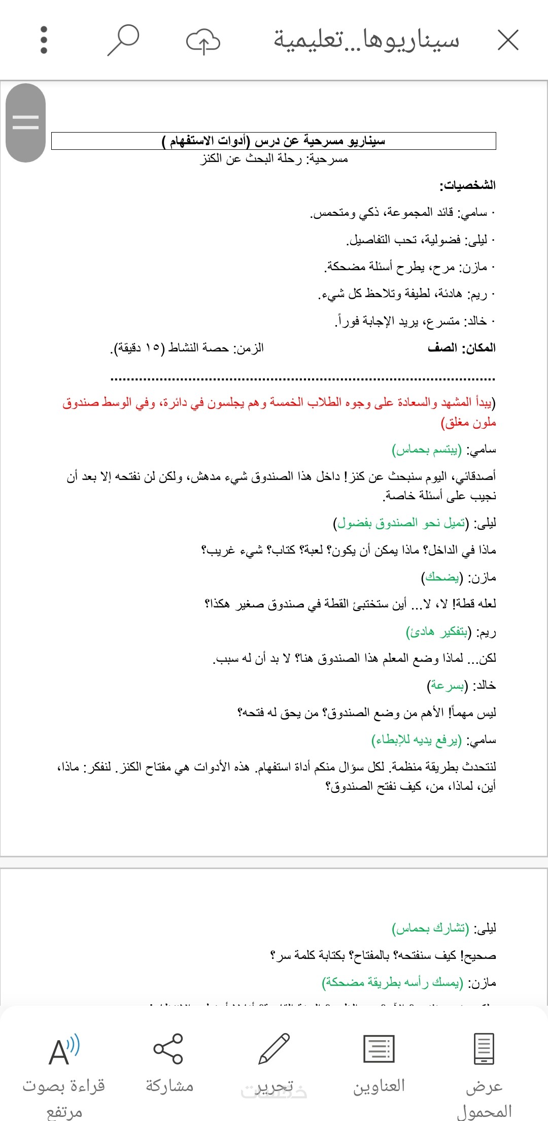 توفير حزمة متكاملة تشمل نصوص مسرحيات جاهزة، سيناريوهات دروس تفاعلية، ألعاب تعليمية، ودليل إرشادي عملي.