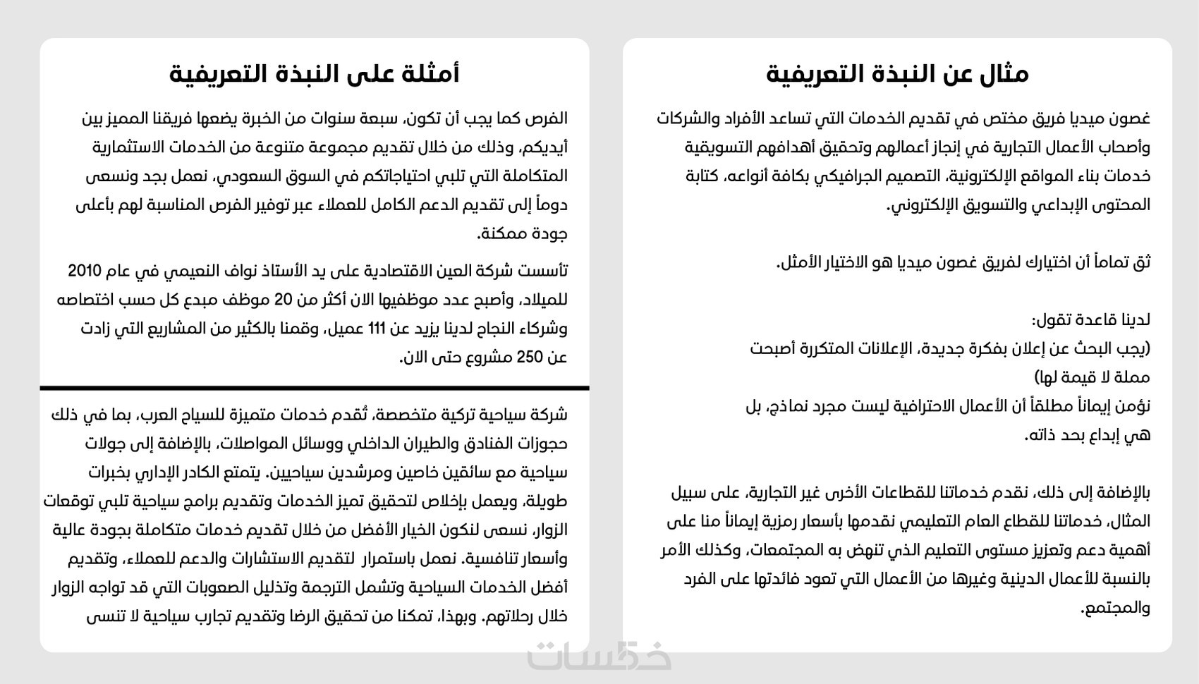 • صياغة حصرية باللغة العربية الفصحى أو العامية حسب الطلب
