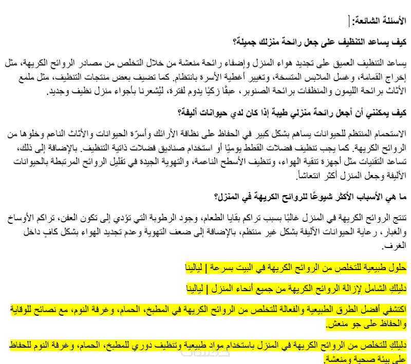 قائمة كاملة بالأسئلة الشائعة (FAQ) لموقعك.