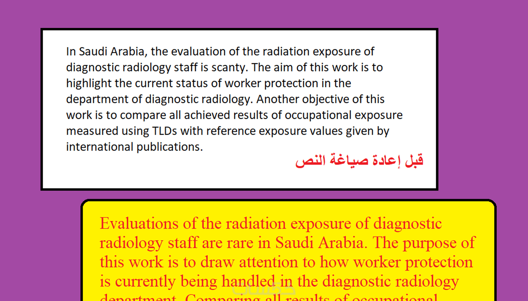 تقرير بواسطة أداة سيف ساين يوضح نسبة الانتحال قبل وبعد إعادة صياغة النص.